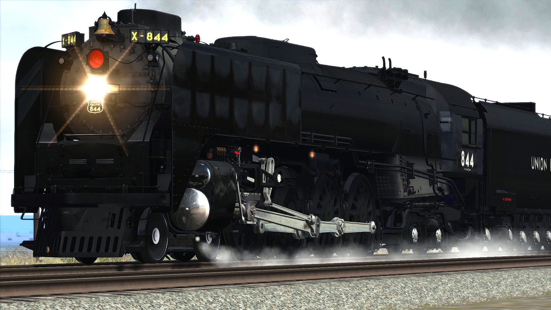 The FEF-3 for Train Simulator, developed by Smokebox, is available in two all-black Union Pacific liveries, one of which includes white-walled driving tyres, chrome finish on some parts, silver grey striping along the edge of runboards, and gold painted cab front windows frames. The FEF-3 is also fitted with diesel multiple unit (MU) controls, meaning it can run in tandem with a diesel locomotive, and features functioning in-cab signalling equipment.