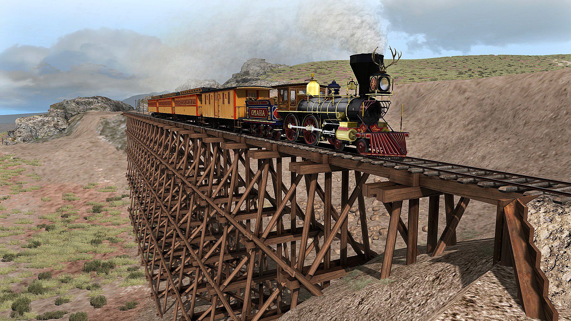 Renowned Train Simulator creator Smokebox has brought 1860s railroading and the famed transcontinental railroad to captivating life with its Promontory Summit route and selection of historic Union Pacific and Central Pacific steam locomotives – and now, Smokebox brings to Train Simulator two more classic 4-4-0 “Americans” – Union Pacific sister locomotives No. 7, the “Omaha,” and No. 8, the “Idaho.”