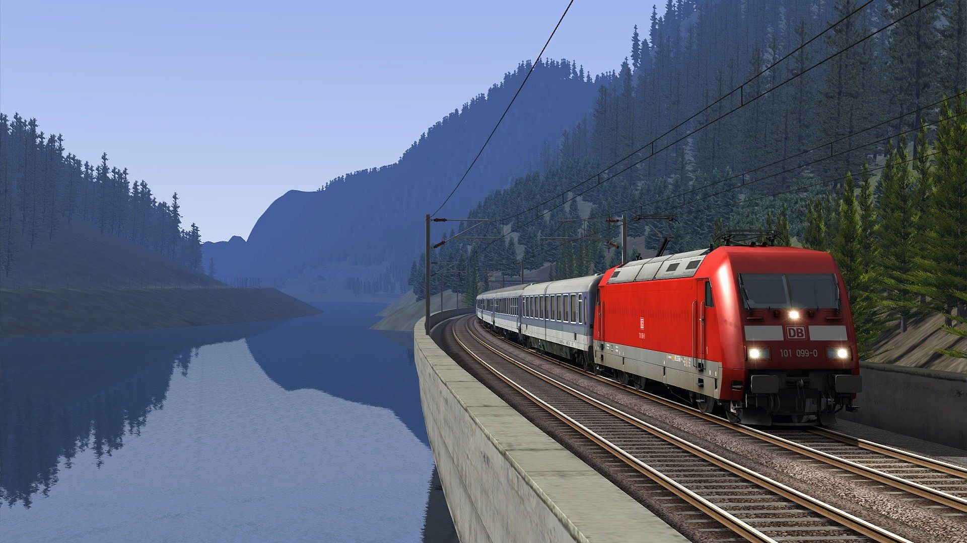 Just Trains’ Valley Corridor for Train Simulator is a fictional mountain route that runs between two large cities, both of which sit on plateaus. The route is used for stopping and express passenger runs as well by freight trains. There are numerous lakes below the route, making it a very scenic and spectacular route to drive. Its maximum line speed is 125mph, which is applicable towards its southern end.