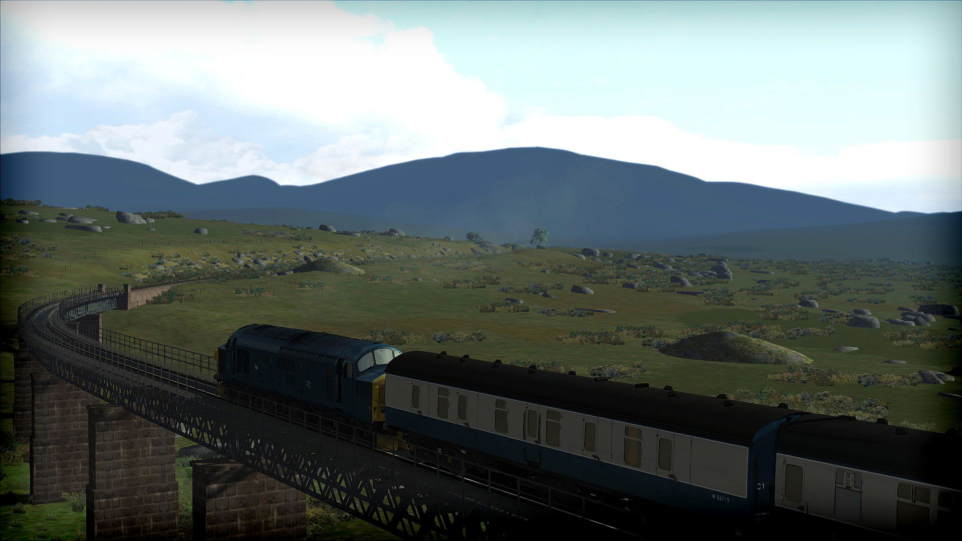 The West Highland Line (South) route for Train Simulator, developed by Milepost Simulations, is set in the early 1980s when the line still had semaphore signalling before Radio Electric Token Block (RETB) was installed. Rolling stock included with the route includes the English Electric Type 3 Class 37/0, a mainstay of locomotive power designed for both freight and passenger services. Accompanying the Class 37/0 are Mk1 passenger coaches in BR blue/grey livery and freight wagons, including OAA, OCA, VDA and YGH wagons with various loads.
