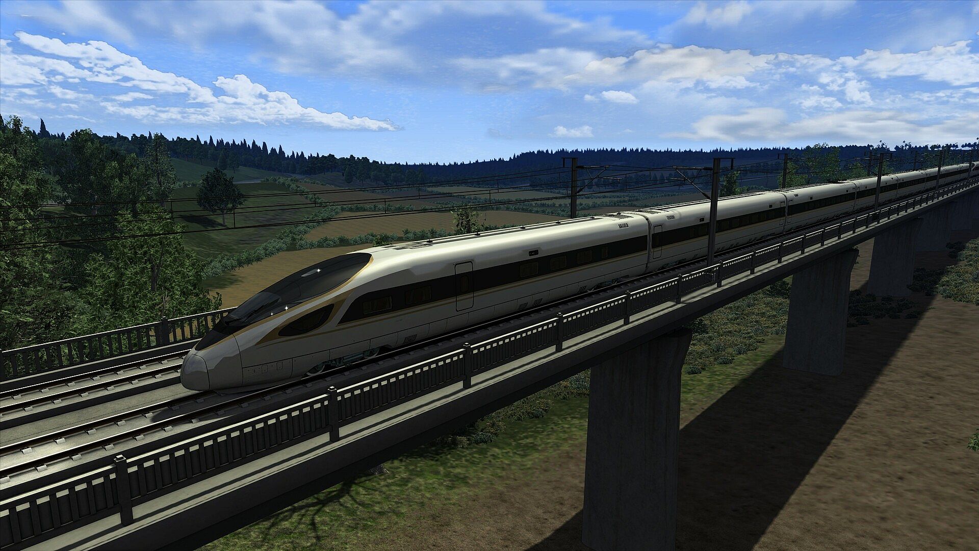 In Train Simulator you can take control on the Zhengzhou to Sanmenxia section of this route. Enjoy scenic views of Henan Province travelling through agricultural landscapes, past rivers, rolling mountains, and rural villages. Push the throttle through this picturesque route to reach 350 km/h with the modern high-speed CR400BF EMU. Newly built by SimTech Vision for this route, the CR400BF is one of the fastest trains in the world. Nicknamed the ‘Golden Phoenix’ for its striking white/gold livery, this has been rebuilt in detail for this route with realistic cab controls and operation.