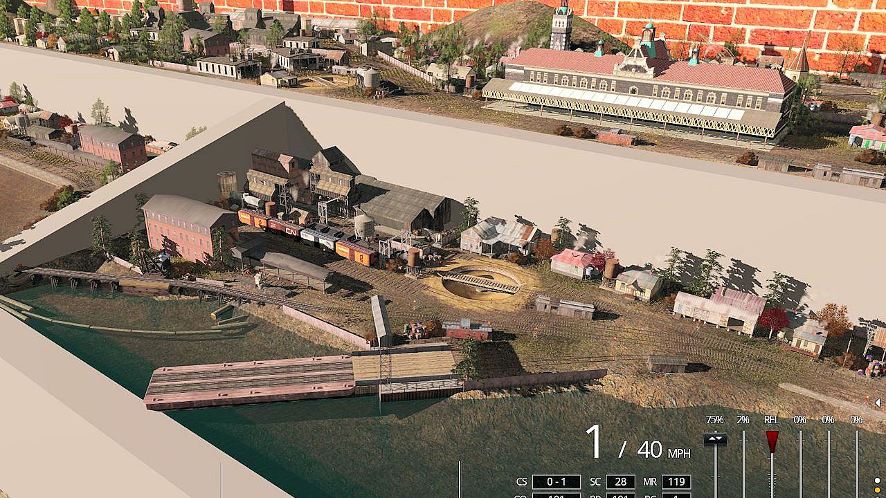 Elsewhere on the railroad are a log camp, mine and stock yard.