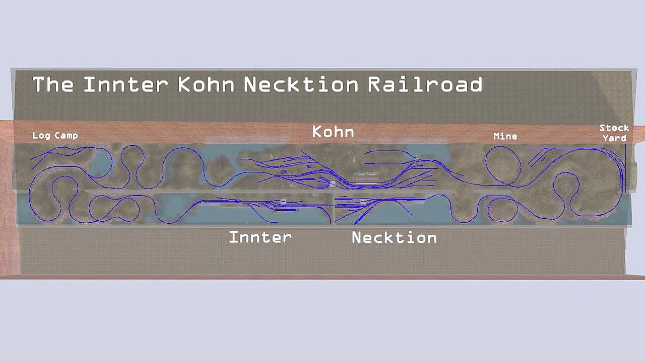 The Innter Kohn Necktion Railroad has both a standard gauge and narrow gauge for this superb TRS19 model railroad layout.