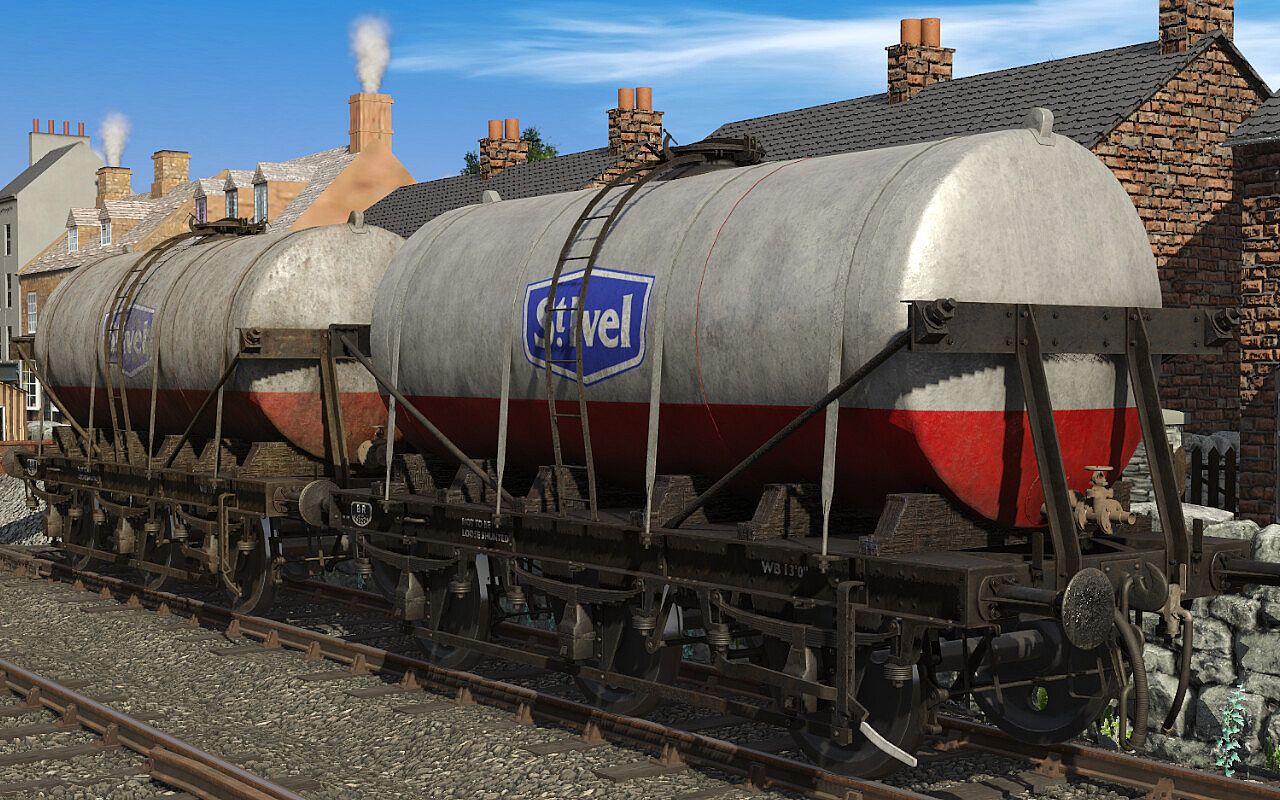 This Pack includes 8 Liveries, covering GWR, LMS, SR and BR, all with clean and weathered variants. The wagons have animated handbrakes, couplings, vacuum and steam heating pipes. The BR Grey Livery also in the wagon properties allows you to change the company displayed on the side of the tanker.
