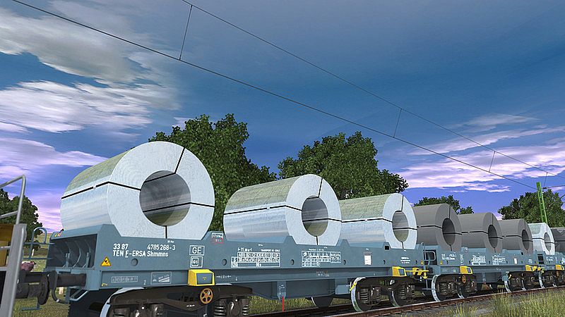 Transport hot-rolled or cold-rolled steel coils in this detailed simulation add-on for Trainz 2022. The Shmmns coil wagon handles coils from 800mm to 2200mm, with options to load each wagon individually or run empty at varying weights. It features animated brakes, realistic sounds, and automatic detail changes based on load status, plus winter effects like icicles visible in January and February. European UIC labeling, tail lights, and visible couplings enhance authenticity, alongside Trainz industry support. Select from multiple coil types with varying specularity and over 100 UIC options. Two sessions on the free Niddertalbahn route let simulation fans expand their fleet with this high-resolution wagon.