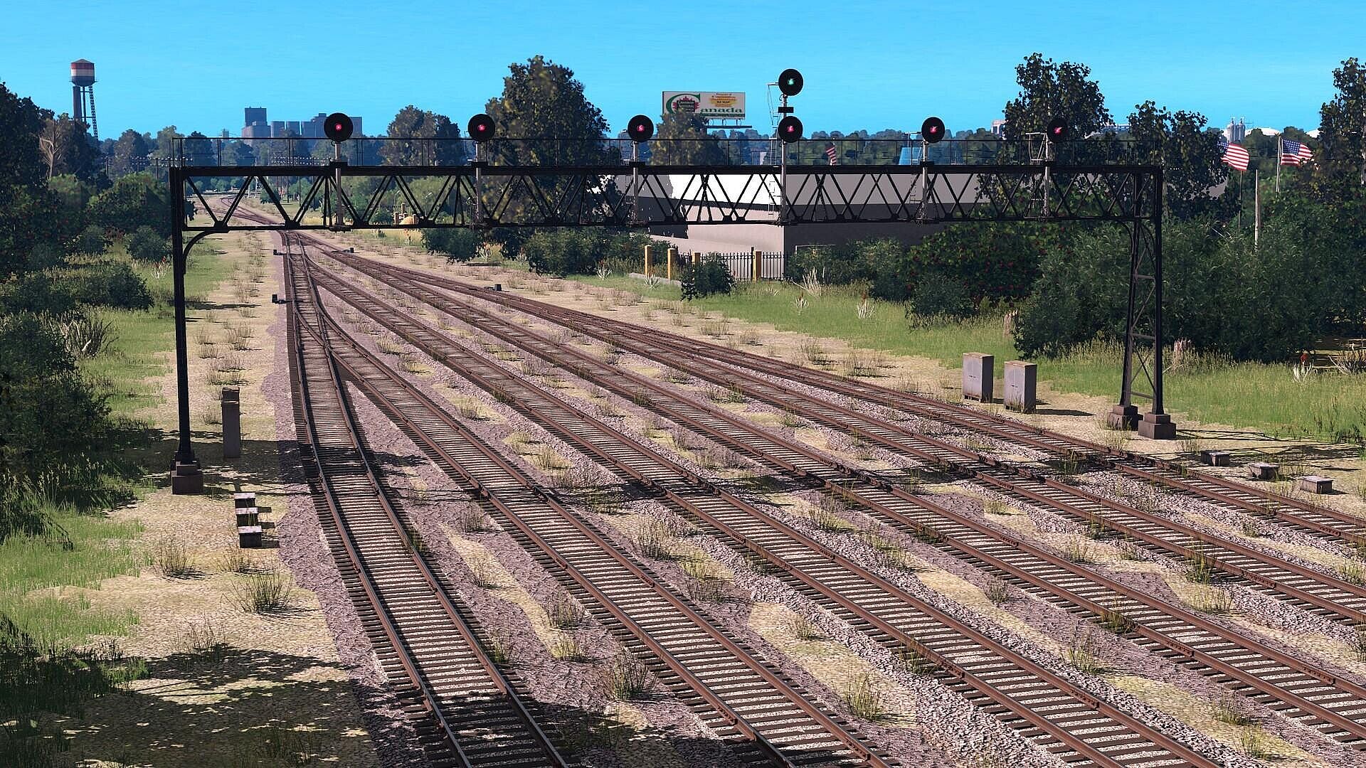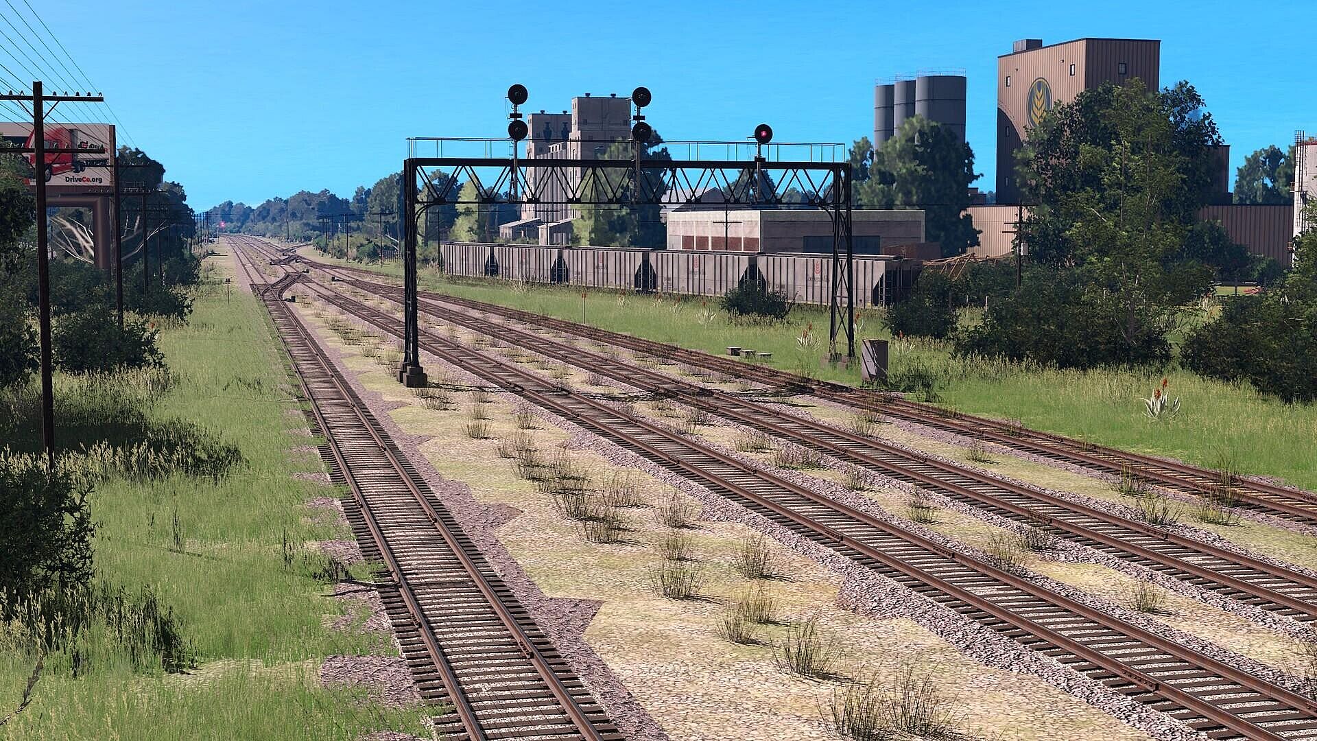 This fictional route is a blend of American railroads from various parts of the USA. The terrain is mostly hilly, filled with forests and swamps. The train yards are based on real yards at Bald Knob, McCrory, and Wynne stations. Grain industries are also present. The route is good detailed and designed with a focus on atmosphere and coziness. Includes 2 base sessions.