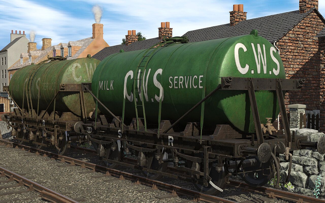 This Pack includes 8 Liveries, covering GWR, LMS, SR and BR, all with clean and weathered variants. The wagons have animated handbrakes, couplings, vacuum and steam heating pipes. The BR Grey Livery also in the wagon properties allows you to change the company displayed on the side of the tanker.