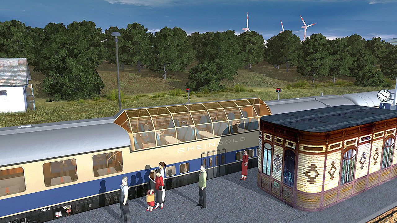 Our greatest demand was to realise this exceptional luxury train appropriately in Trainz Simulator and, therefore, just as in the Orient Express, we once again went out of our way: the countless materials and details used, let the train appear extremely realistic. Apart from the four blue Rheingold-Cars provided, two passenger interiors welcome you aboard. Unprecedented effort has been put into the interior of the dome car as well as the dining car. We, therefore, invite you to explore these exceptional cars. Whether you are heading for the bar, the restaurant or for the dome, all these areas have been realised with great attention to detail. Take a look at the table decoration - even in the coffee pots, the plate inscriptions or the flowers. And perhaps you will even find the miniature Rheingold on your exploration tour?