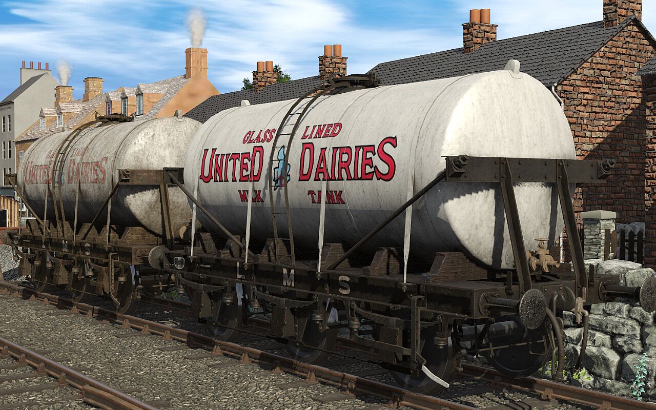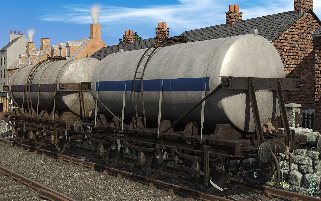 This Pack includes 8 Liveries, covering GWR, LMS, SR and BR, all with clean and weathered variants. The wagons have animated handbrakes, couplings, vacuum and steam heating pipes. The BR Grey Livery also in the wagon properties allows you to change the company displayed on the side of the tanker.