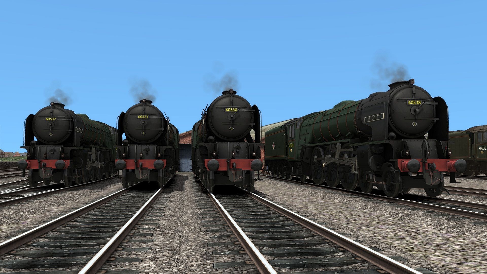 The British Railways Class A2 Livery Pack for Train Simulator includes the A2 in BR Brunswick Green, with clean and weathered variants, and with both early and late British Railways logos. It also includes all 15 members of the class: