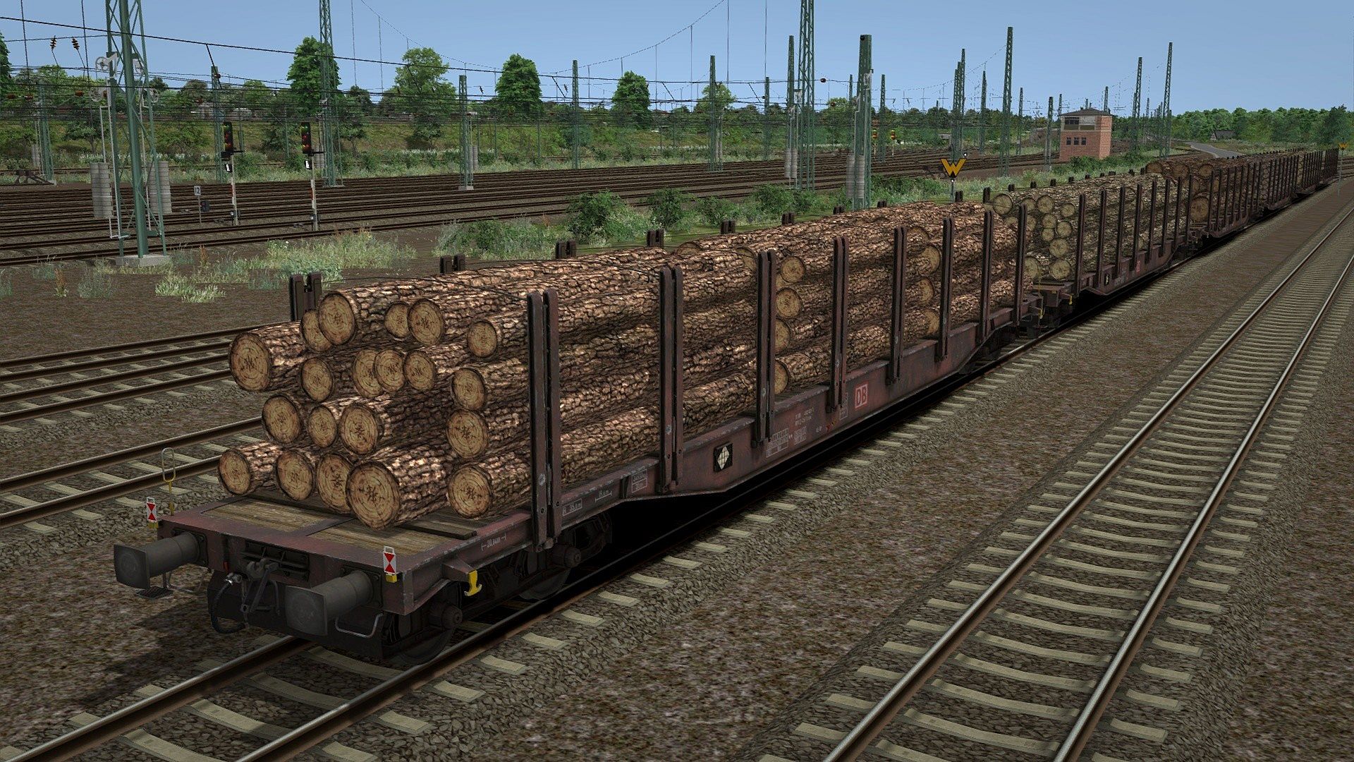 In Train Simulator, virtualRailroads’ Snps Wagon Pack 01 includes an authentic recreation of the wagon, including several variants of log loads.