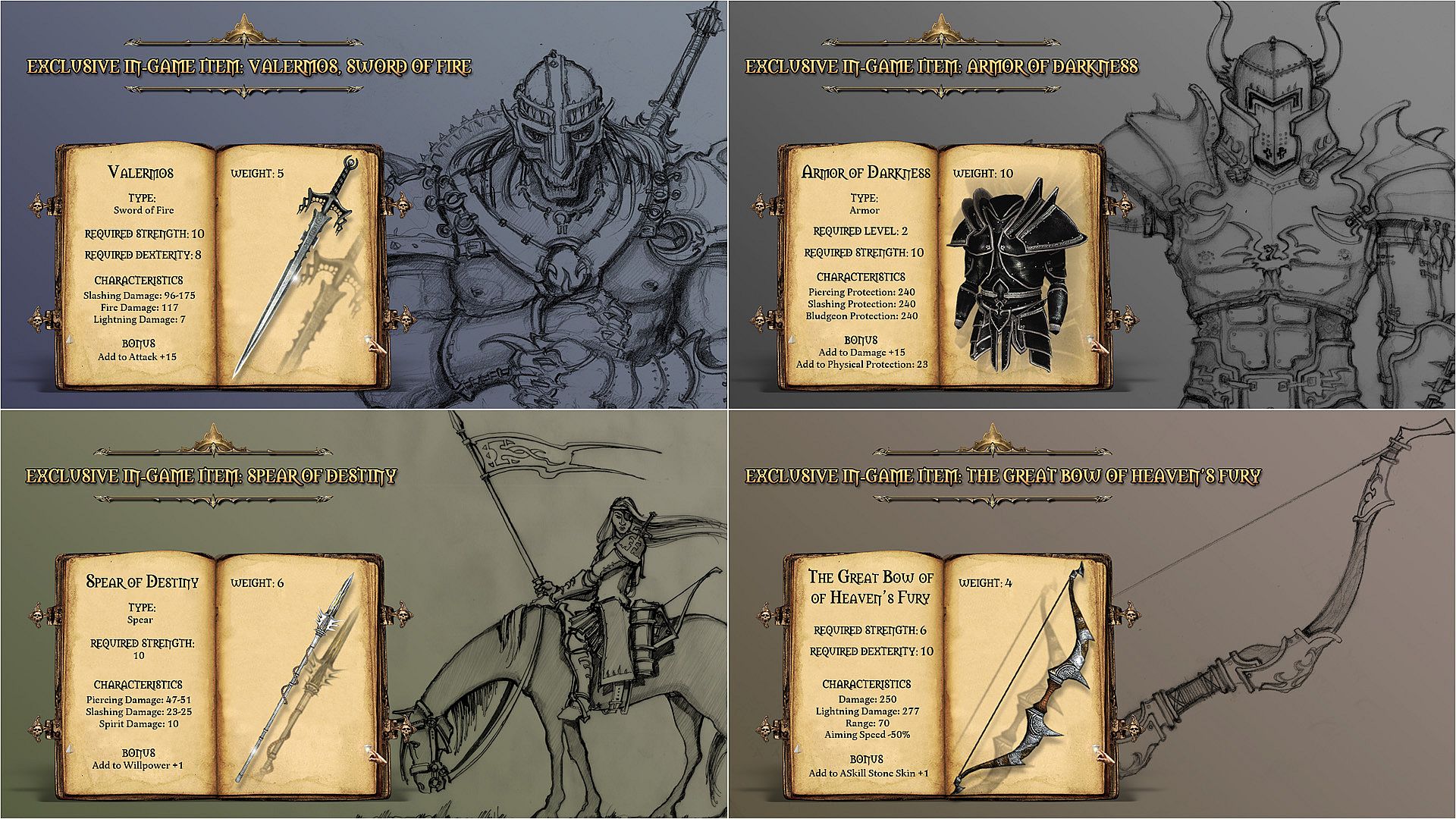- 4 exclusive In-Game Items (Valermos - Sword of Fire, Armor of Darkness, Spear of Destiny and The Great Bow of Heaven's Fury)