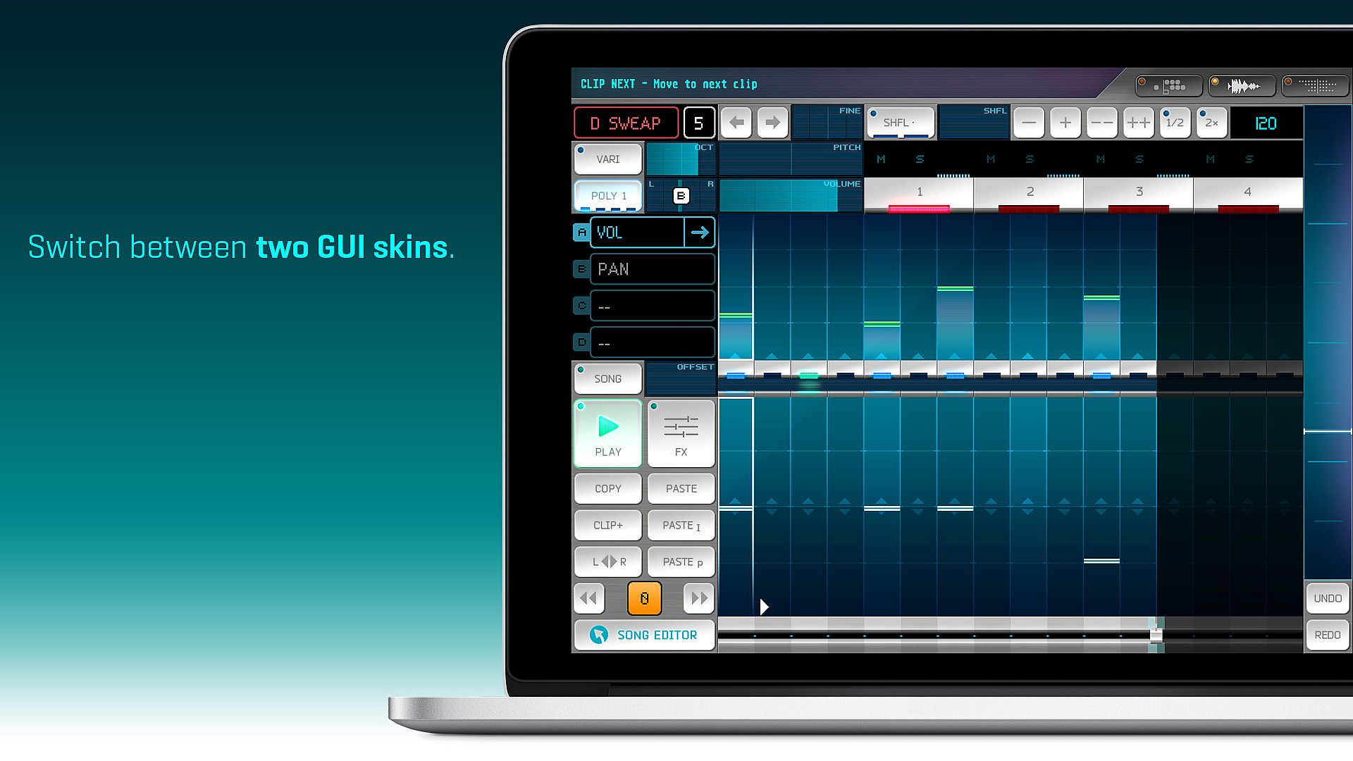 Every instrument is now a wavetable synthesizer. With the advanced effect module, you have more power to shape sounds with the ADSR envelope, vibrato, portamento, noise shaper, or digital delay. In addition to that, the drawable waveform synth module allows users to draw and modify their own wave and use it as a sample oscillator – with that you can use Rytmik Ultimate as a sonically unique chiptune synthesizer.