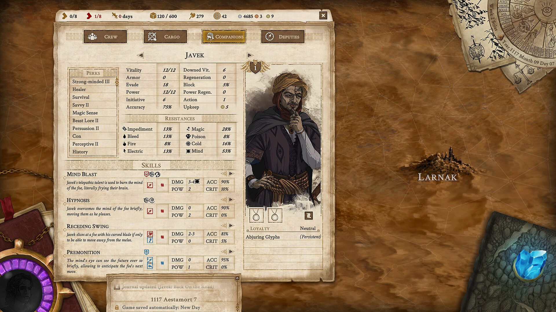 Those familiar with the Tarkian will know him as an idealistic and gifted sorcerer with the ability to read minds and sense feelings. A principled and compassionate man still, yet much has changed for Javek in the time since his days on the road, irrevocably setting the Tarkian on a path few would choose.Sedarias