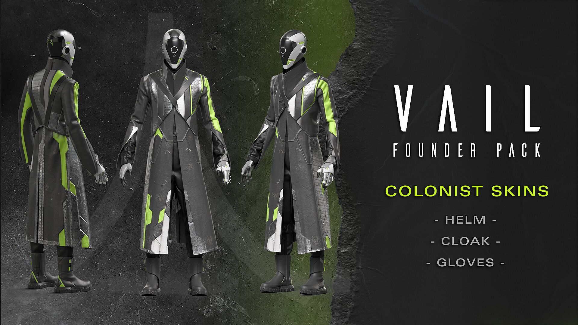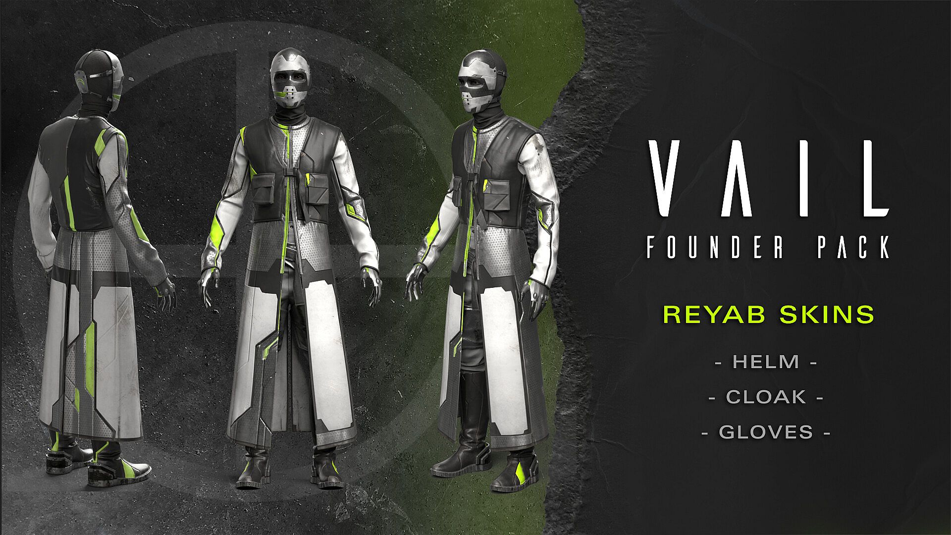 - Founder Pack Faction Skins ("Founder" REYAB + Colonist Helm, Cloak and Gloves)