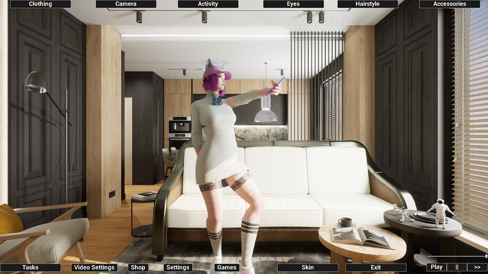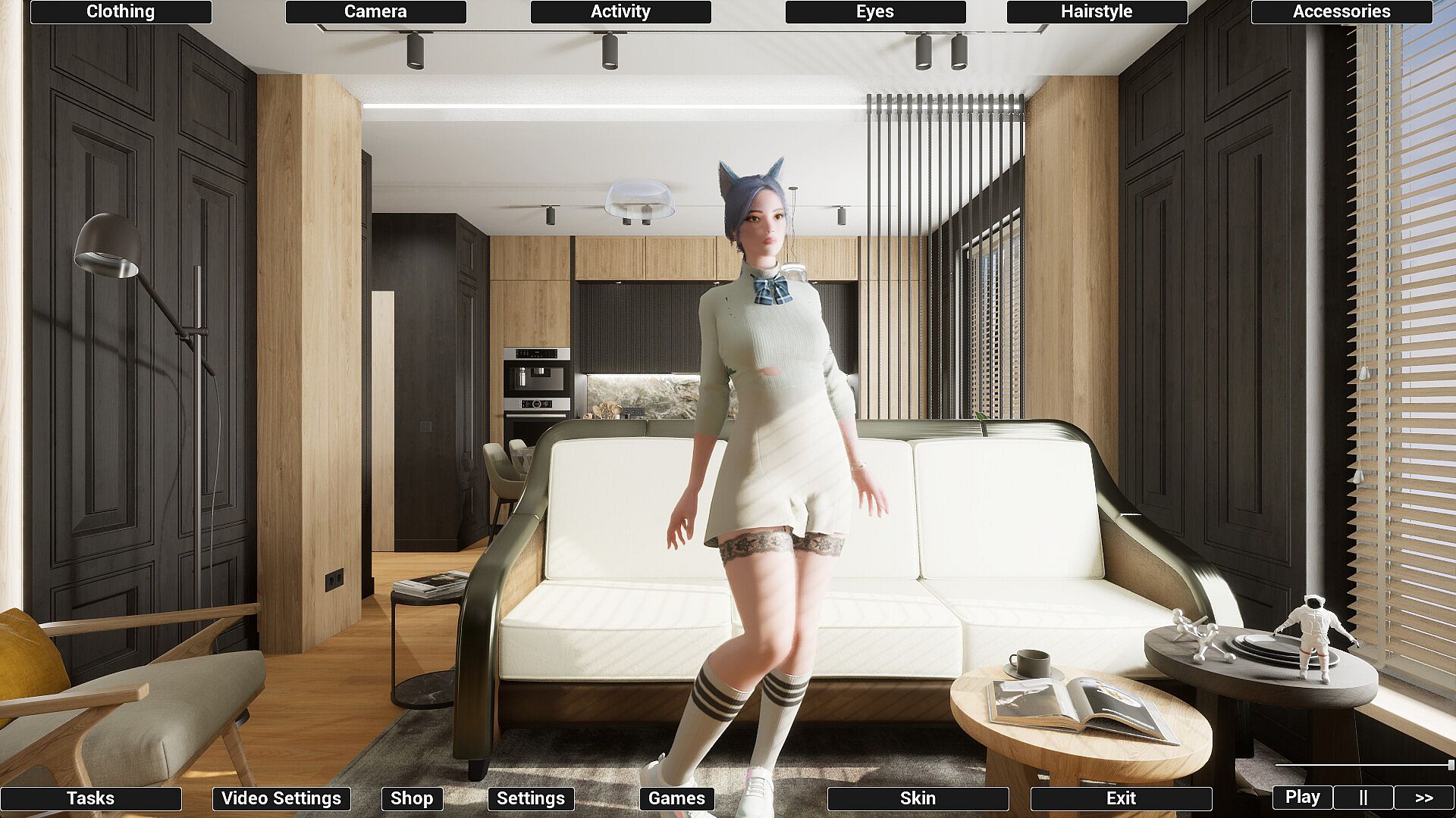 Introducing the Virtual Girlfriend Lia: Teacher's Outfit add-on! This exciting update brings Lia a sophisticated and alluring teacher look, complete with a stylish new skirt, sweater, and hairstyle. Discover a fresh side of Lia like never before!