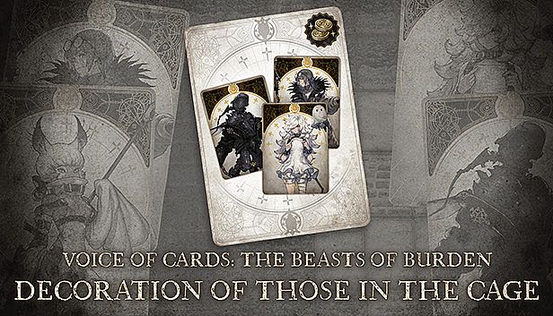 Before you start looking for a cheap Voice of Cards: The Beasts of Burden Decoration of Those in the Cage CD Key, take a moment to check the essentials. Developed by Square Enix. Published by Square Enix. PC released date: 13 Sep 2022. Genres: RPG. Categories: Family Sharing, Steam Trading Cards, Single-player, Downloadable Content, Steam Achievements, Full controller support, Steam Cloud.