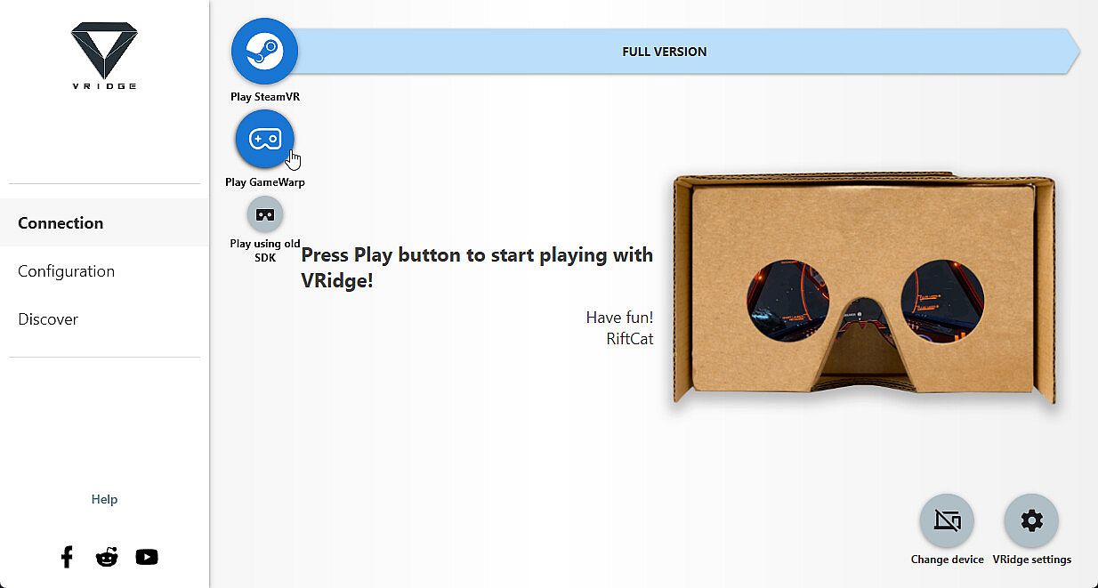 Before you start looking for a cheap VRidge - GameWarp unlock CD Key, take a moment to check the essentials. Developed by RiftCat Sp. z o.o.. Published by RiftCat Sp. z o.o.. PC released date: 17 Jan 2024. Genres: Utilities. Categories: Downloadable Content.