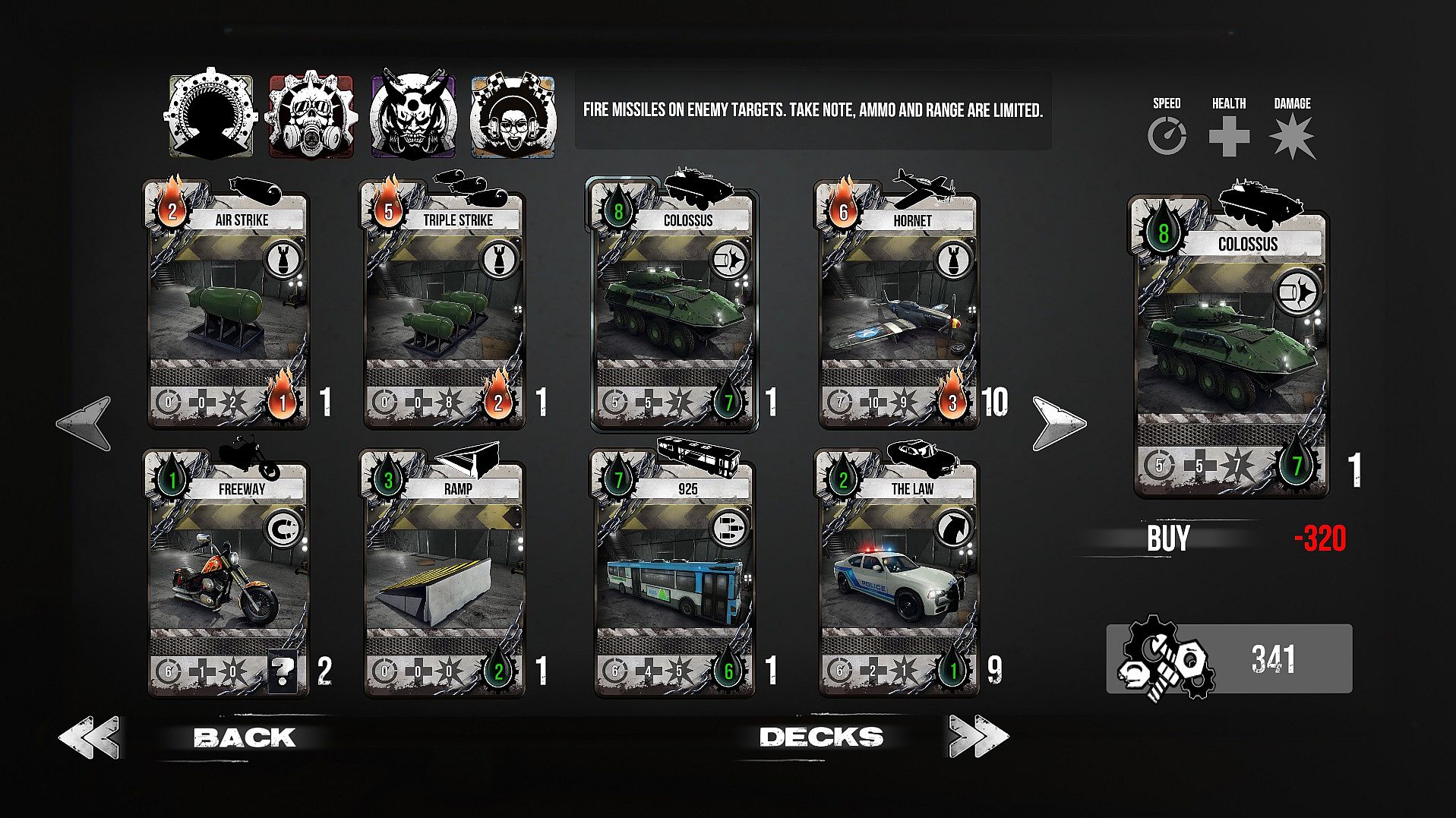 Strategically use your cards to summon vehicles and DEPLOY them on the battlefield. DRIVE, jump, shoot, bomb and ram your way to victory! Crash into your enemy’s vehicles, blow up their defenses and DESTROY their oil tanks to secure victory.Enjoy the ride!