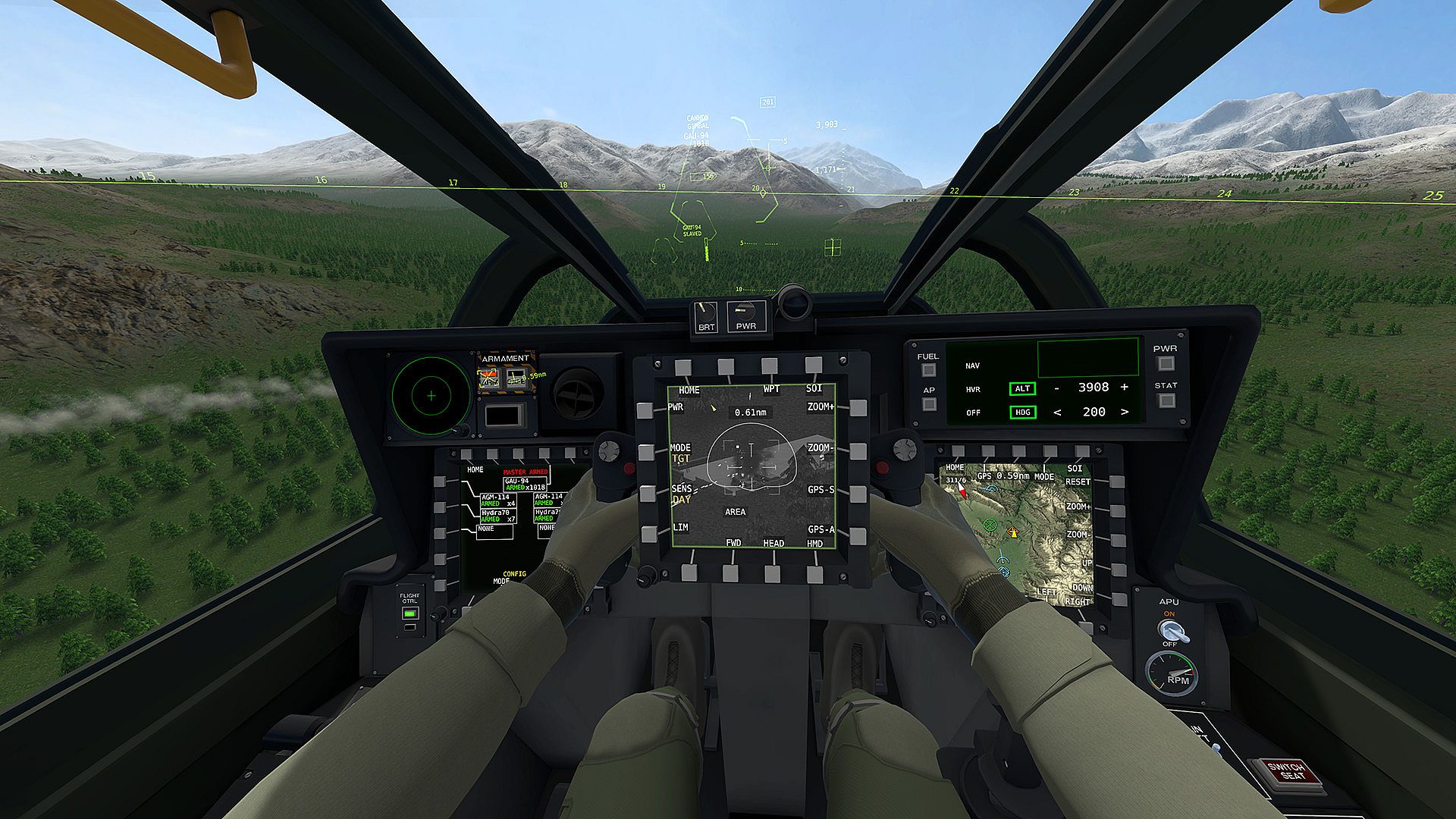The AH-94 is a twin-turboshaft attack helicopter with a tandem cockpit for two pilots. It features nose mounted optical sensors, and can mount a 20mm rotary cannon or 30mm chain gun. It is capable of carrying various air-to-ground missiles, rockets, and other equipment on 4 wing pylons, as well as two small air-to-air missiles on each wing tip.The aircraft's sleek design, retracting landing gear, modern rotor blade design and powerful engines allow it to cruise for over 400nm or sprint at over 200 knots.