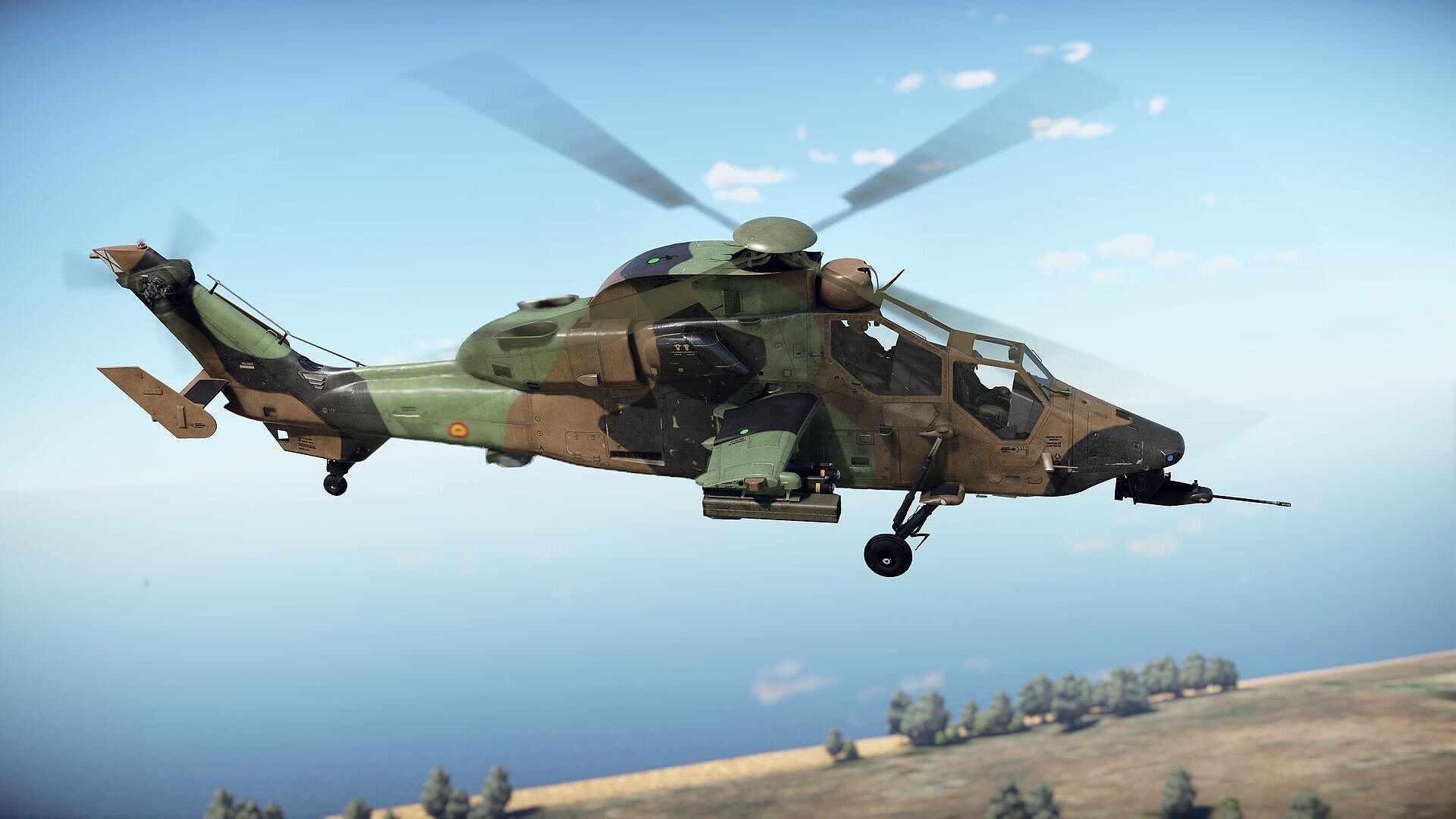 The EC-665 Tigre HAD-E is a Spanish premium variant of one of the best attack helicopters in War Thunder within Germany’s helicopter tech tree. Compared to the French one, this variant primarily differs in weaponry — it retains the more maneuverable Mistral air-to-air missile and is equipped with the long-range tandem-warhead Hellfire II anti-tank missile, featuring laser and inertial guidance. Additionally, for ground attack missions the Spanish version can carry Hydra rockets.
