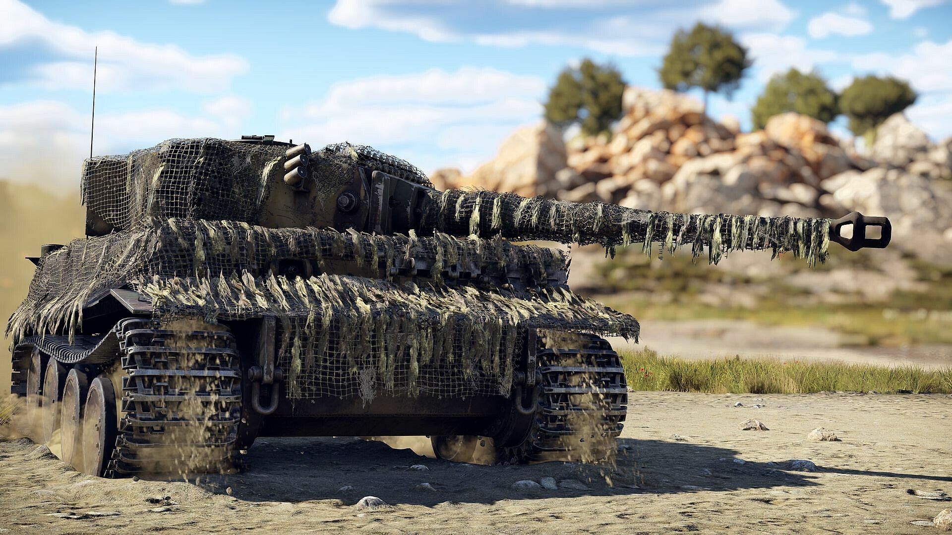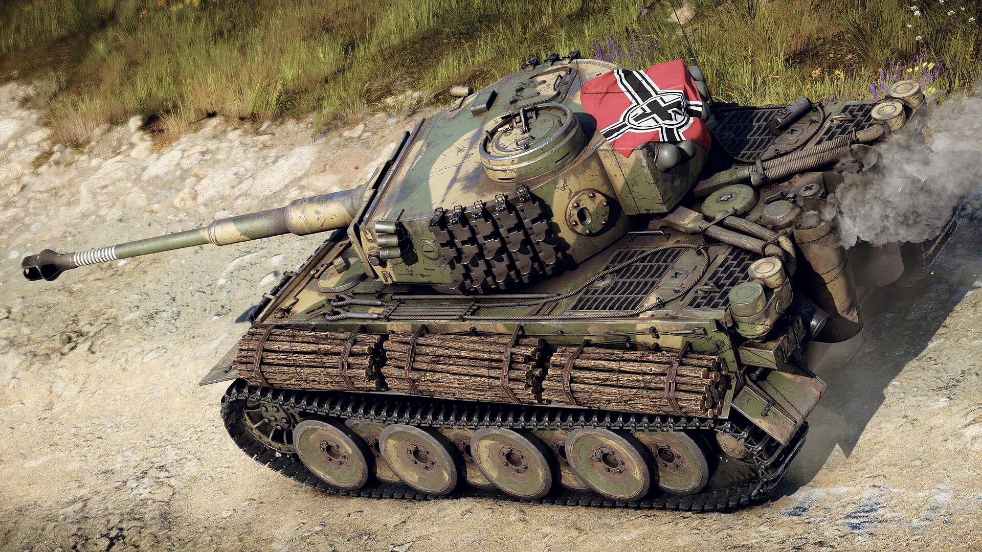 The pair of premium Tiger H1 heavy tanks are inspired by Tiger tanks on the Eastern and Western fronts, with aesthetic elements inspired by each theatre. These Tigers both feature some additional track armor, and greater gun depression over the corners of the hull due to the removal of the anti-infantry mortars. Aside from this, they both feature the same legendary 88 mm cannon with destructive APHE rounds!