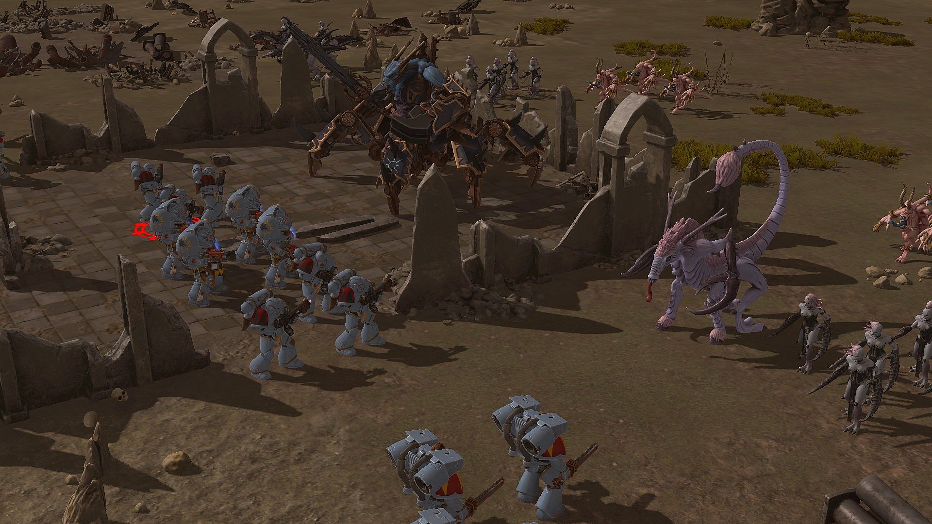 Chaos Daemons have also been added as a new playable faction in Skirmish, with many new units each devoted to a different Chaos god! Servants and champions of Nurgle, Slaanesh, Khorne and Tzeentch are ready to swarm over Orks and the Imperium alike, with new mighty abilities derived from the Warp. Hordes of Bloodletters, crazy Chaos Spawns, fetid Plague Drones, and infernal Soul Grinders… the pits of Chaos are deep.