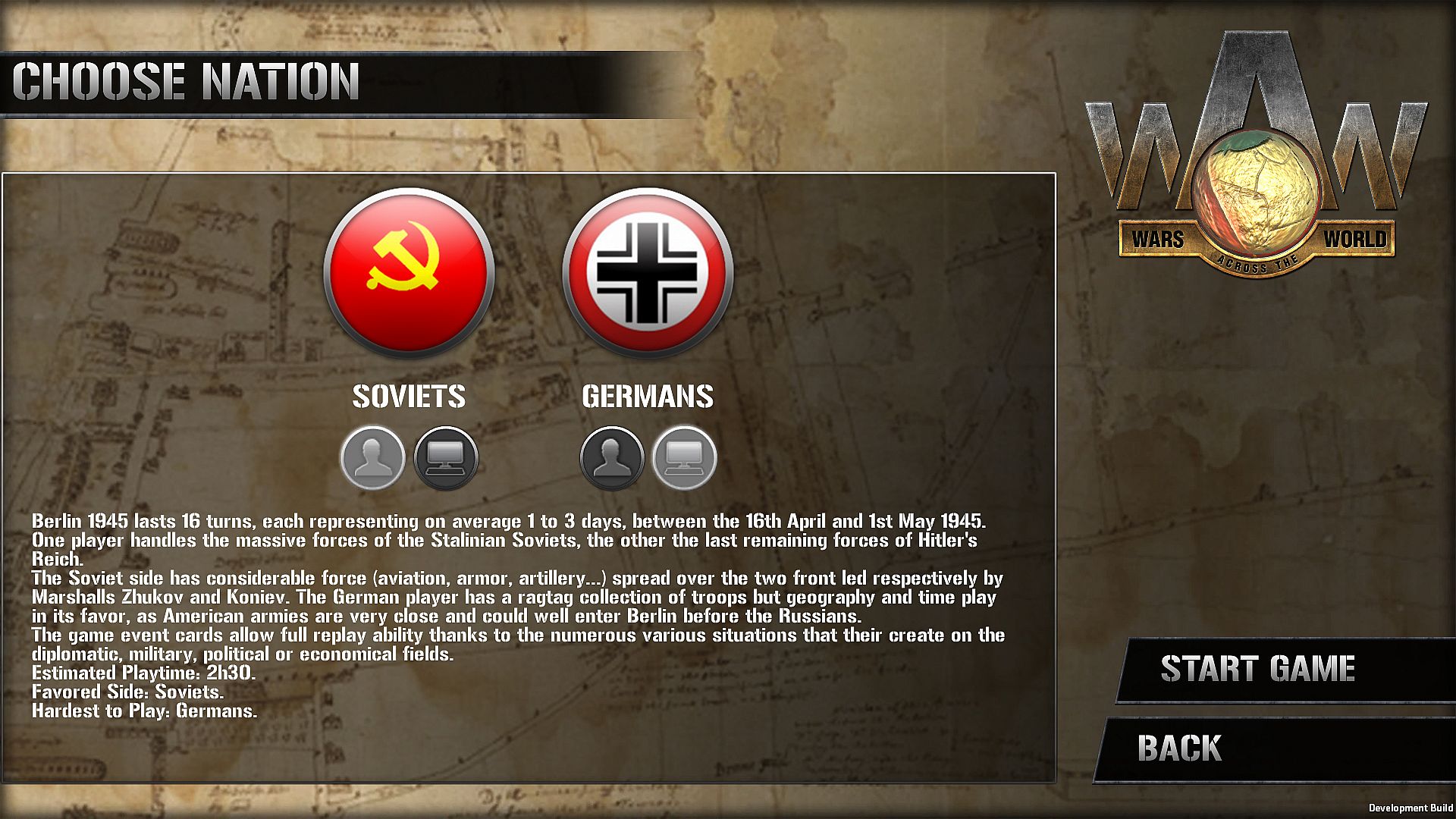 The German player must hold at all costs, and withstand the Russian assault till the Americans arrive and become the first to enter Berlin.