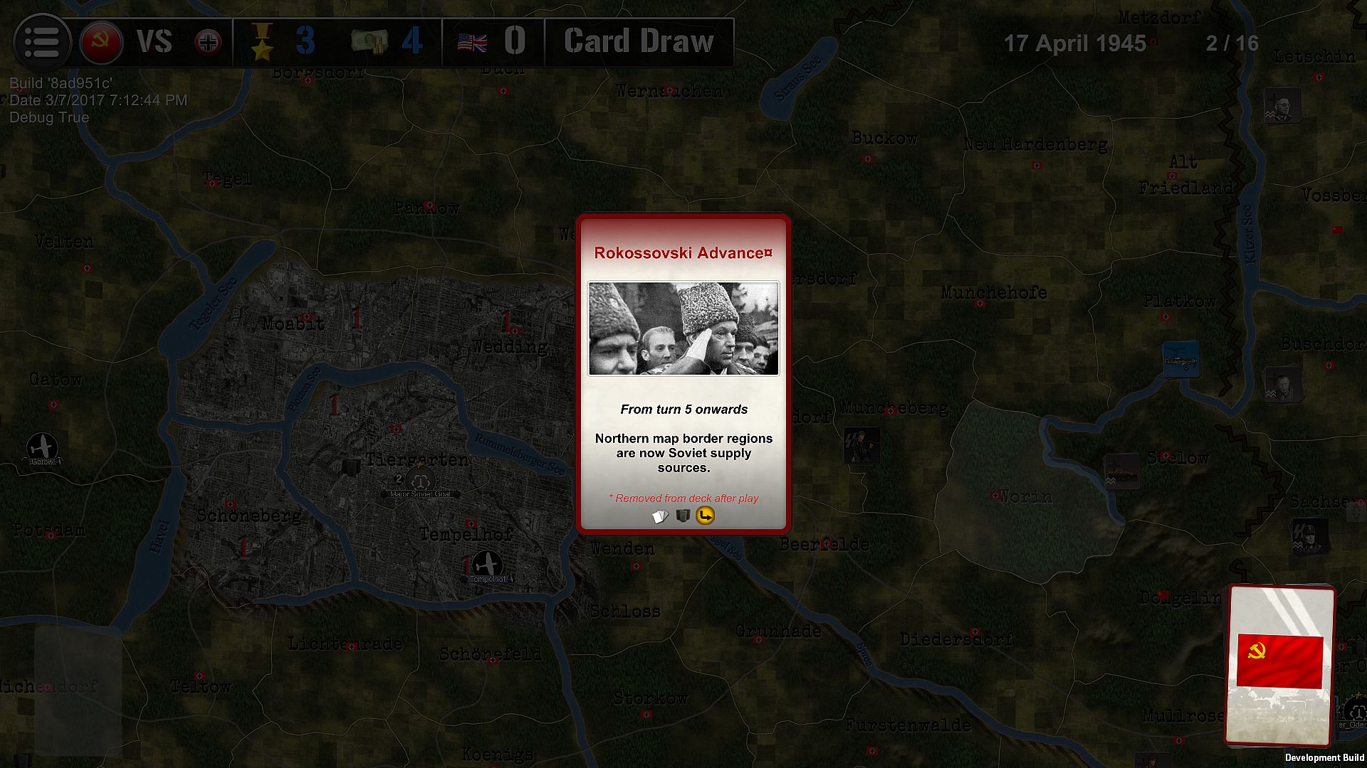 - The German player has a ragtag collection of troops but geography and time play in its favor, as American armies are very close and could well enter Berlin before the Russians.