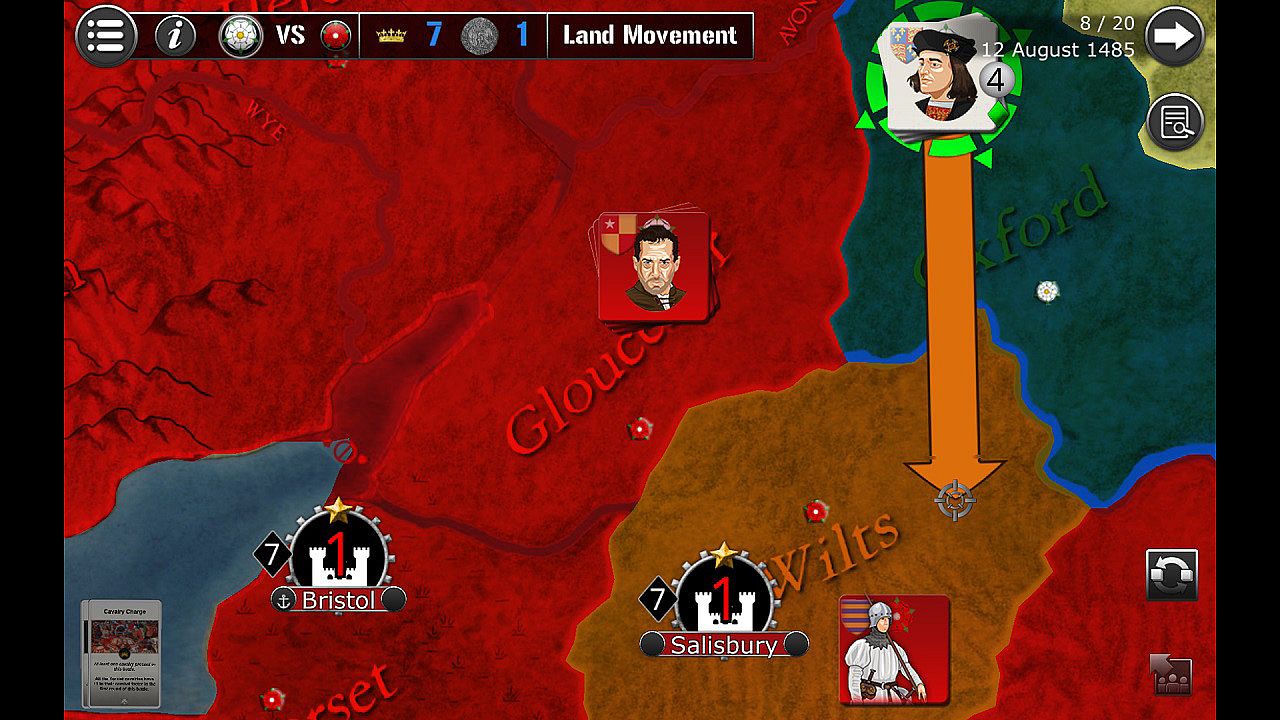 • Pretender Henry Tudor starts as an exile in France and must land and find allies to overthrow his opponent.