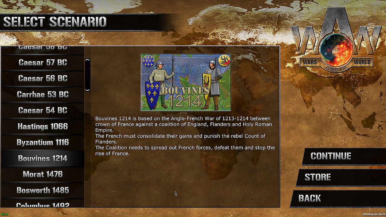 Bouvines 1214 is based on the Anglo-French War of 1213-1214 between crown of France against a coalition of England, Flanders and Holy Roman Empire. The French must consolidate their gains and punish the rebel Count of Flanders. The Coalition needs to spread out French forces, defeat them and stop the rise of France.