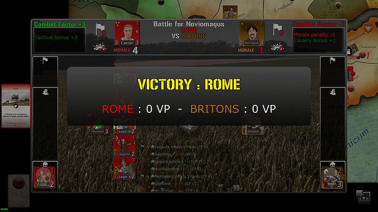 • The Roman player must capture as fast as possible the strongholds of the opposing Briton tribes and take hostages from them, with the help of his famous general, his legions and his fleet.