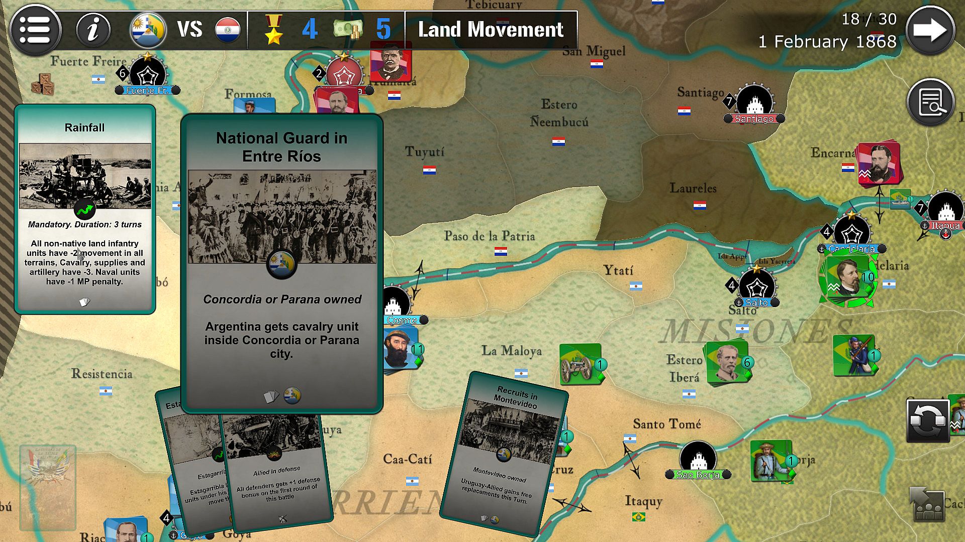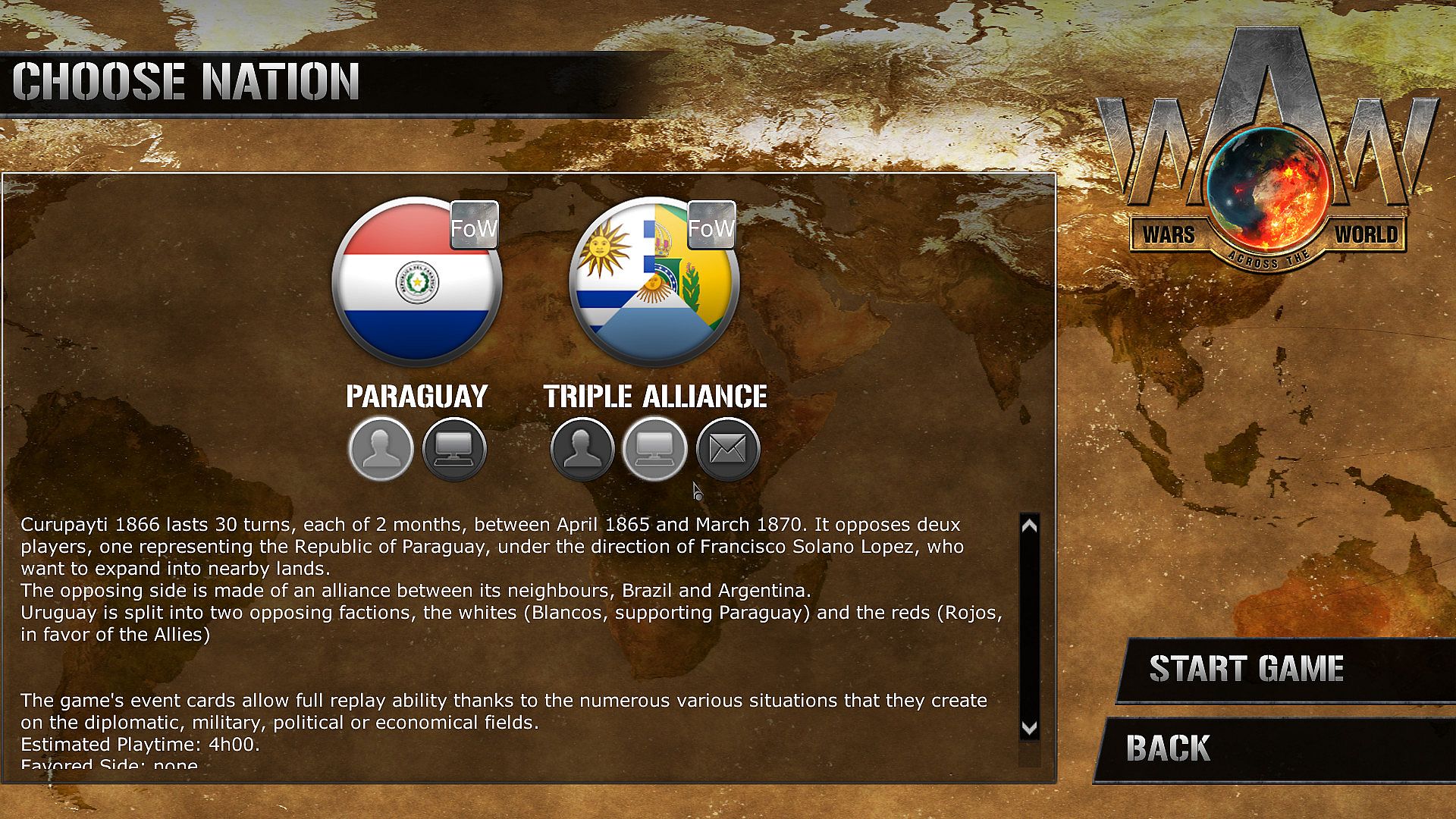 The Republic of Paraguay, under the leadership of President Francisco Solano Lopez, who sought to seize the neighboring territories he claimed, and then to hold on to them until the end of the game..