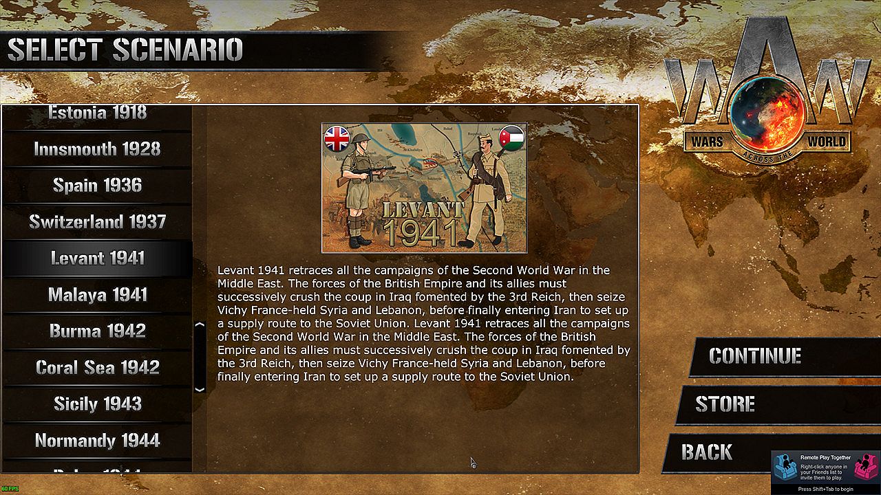 Before you start looking for a cheap Wars Across The World: Levant 1941 CD Key, take a moment to check the essentials. Developed by Strategiae. Published by Plug In Digital. PC released date: 16 Jun 2021. Genres: Strategy, Indie. Categories: Multi-player, Remote Play Together, Family Sharing, Steam Trading Cards, Single-player, Downloadable Content, Steam Achievements, Shared/Split Screen.