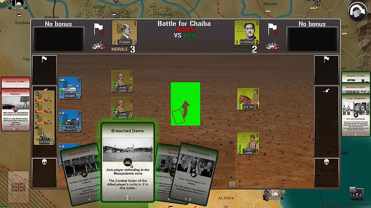 • The Allies (British Empire and Free France) must first overthrow the new power in Iraq that could supply the Reich with oil, then conquer Syria before it becomes a platform for the Luftwaffe, and finally control Iran to open a logistical route to the USSR.