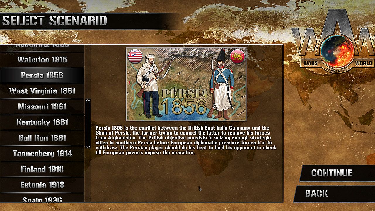 Before you start looking for a cheap Wars Across the World: Persia 1856 CD Key, take a moment to check the essentials. Developed by Strategiae. Published by Plug In Digital. PC released date: 31 Jan 2018. Genres: Strategy, Indie. Categories: Multi-player, Family Sharing, Steam Trading Cards, Single-player, Downloadable Content, Steam Achievements, Shared/Split Screen.