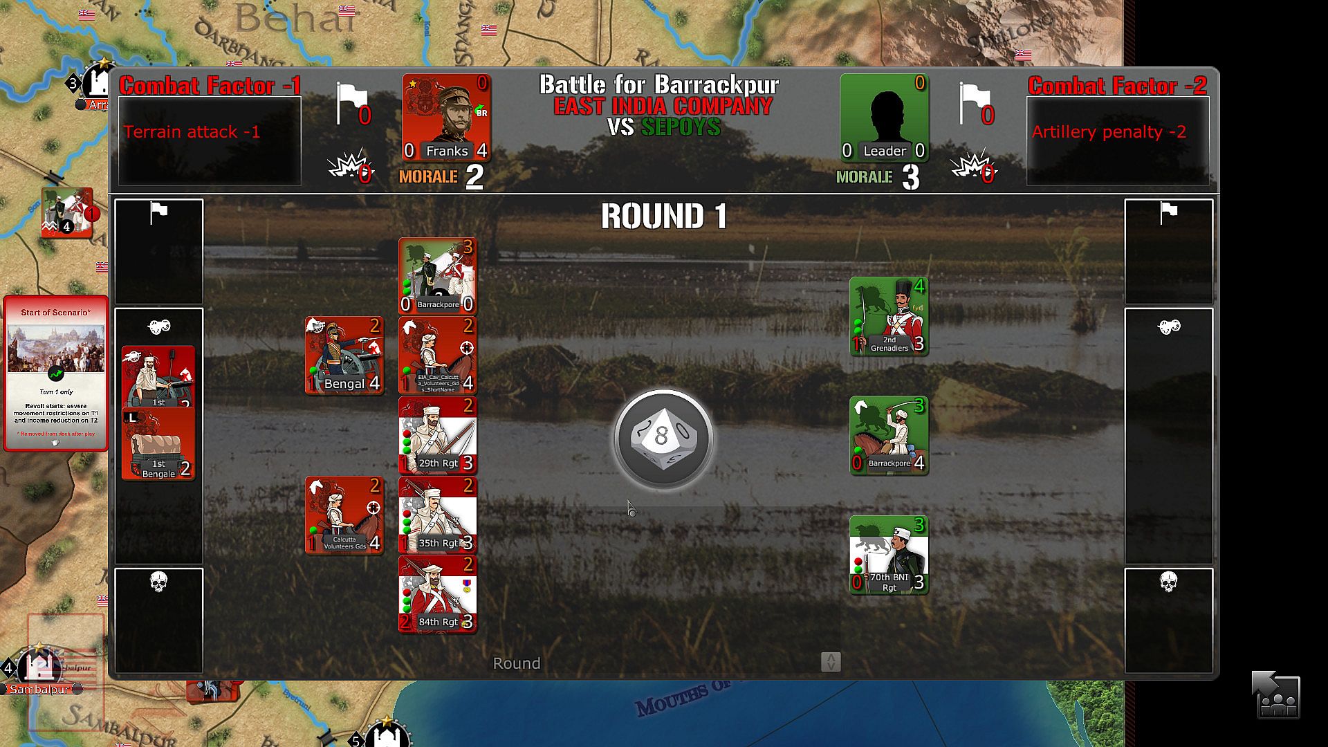 - The British have many units but spread all over the map and initially mostly immobile, and will need time to cope with various rebels groups.