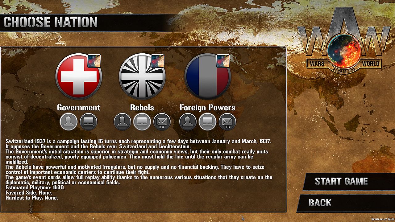Before you start looking for a cheap Wars Across The World: Switzerland 1937 CD Key, take a moment to check the essentials. Developed by Strategiae. PC released date: 21 Feb 2019. Genres: Strategy, Indie. Categories: Multi-player, Family Sharing, Single-player, Downloadable Content, Steam Achievements, Shared/Split Screen.