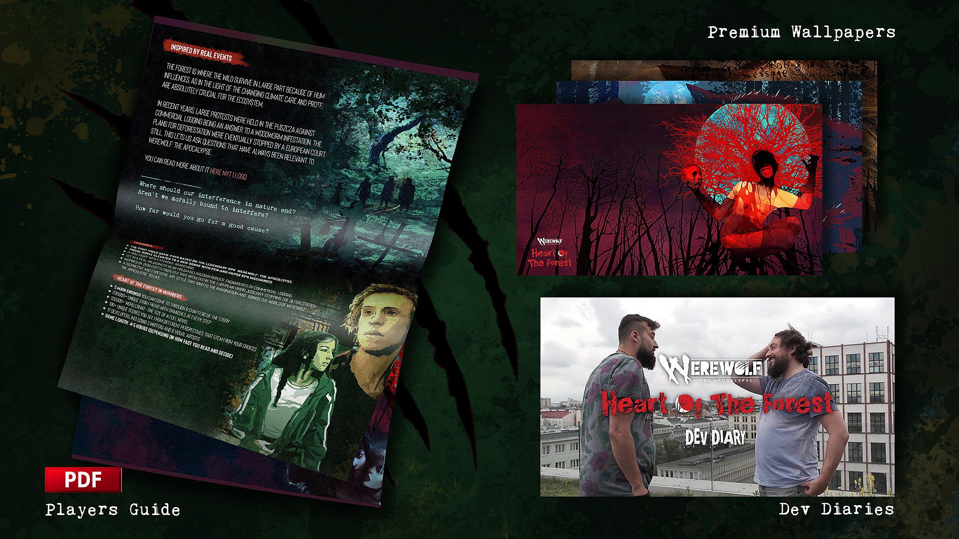 - Dev Diaries, a series of 14 video interviews with Werewolf's lead designer Artur Ganszyniec, who answers the frequently asked questions about the game.