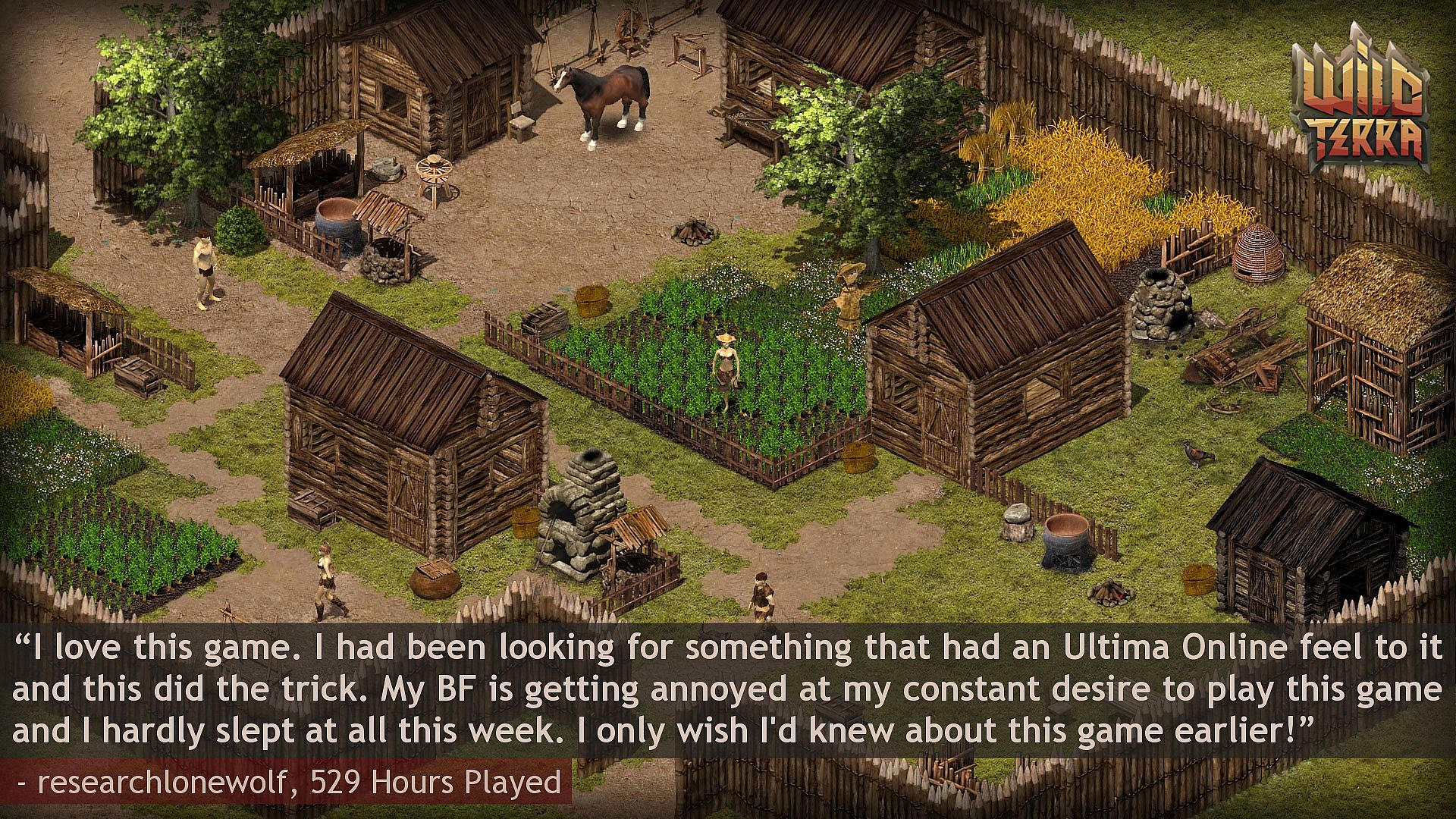 Wild Terra Online is a realistic sandbox RPG, in a completely player-controlled medieval world. You will have to survive in a forest full of predators, build a shelter and improve your crafts skills, tame animals and fight for treasures. You can become anyone and do whatever you want!