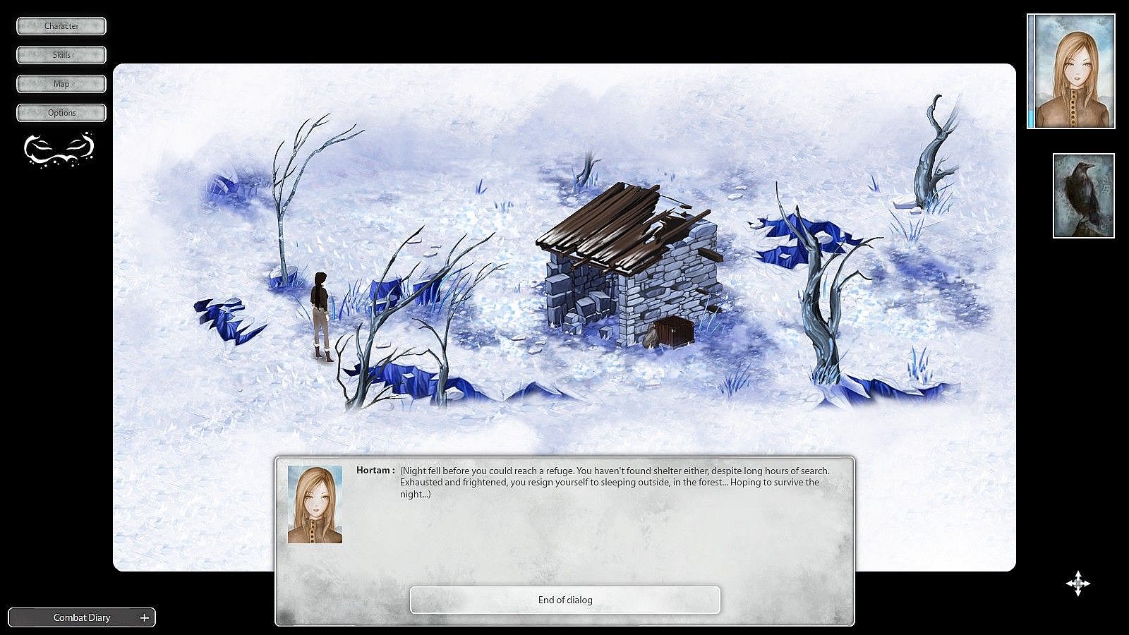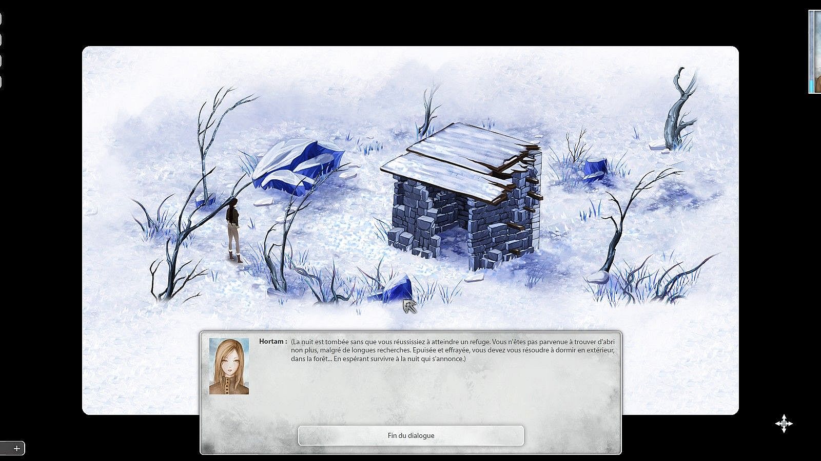 It’s now time for a long journey, on a snowy trail, to the distant capital, from shelter to shelter. Travelling in the snow is an ordeal and strangers, tramps or travelers also caught up in this unexpected winter now replace the familiar faces of your childhood village. Haunted by ghosts in your past, to avoid giving up on the voyage and going back, you must find the courage to face your fears.