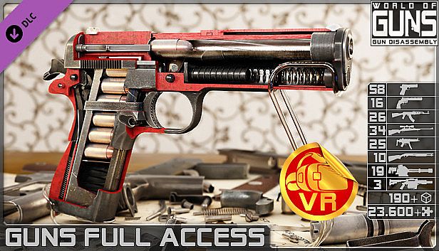 'Guns Full Access' DLC unlocks all existing and future released gun models for 'World of Guns: VR'.