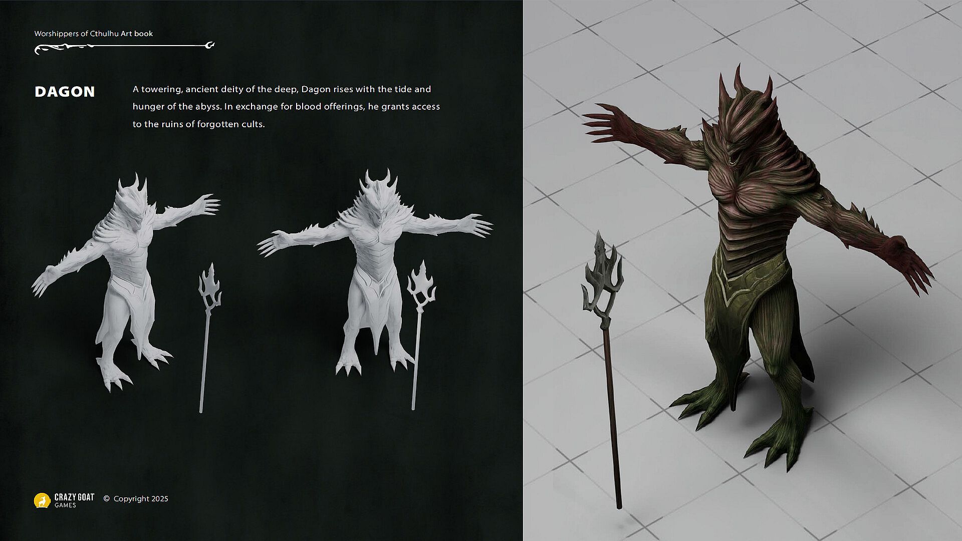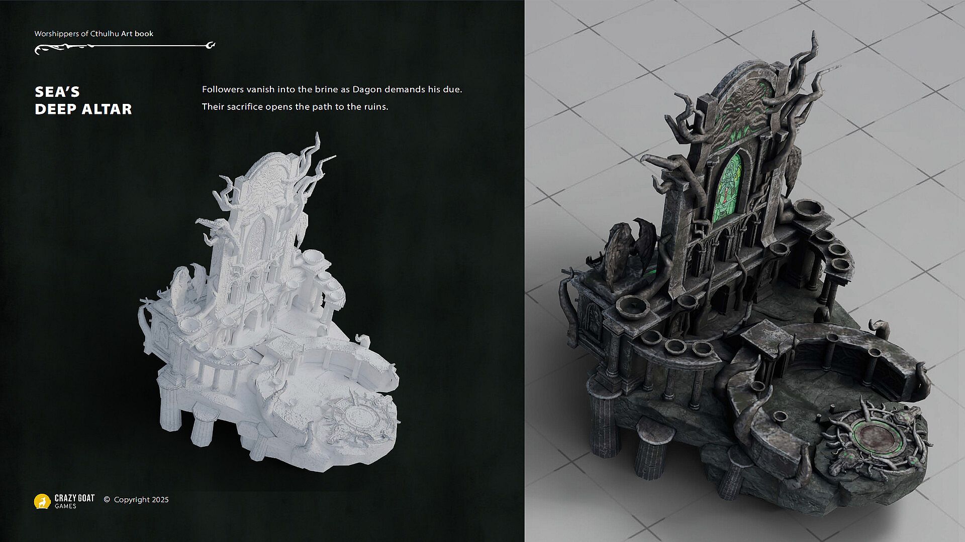 Crafted with atmosphere and storytelling in mind, the artbook blends concept designs, environmental details, and select ritual scenes that bring the Lovecraftian horror to life. Whether you’re a fan of dark fantasy, cosmic horror, or simply want a deeper connection to the visual lore of the game, this artbook is a must-have addition.