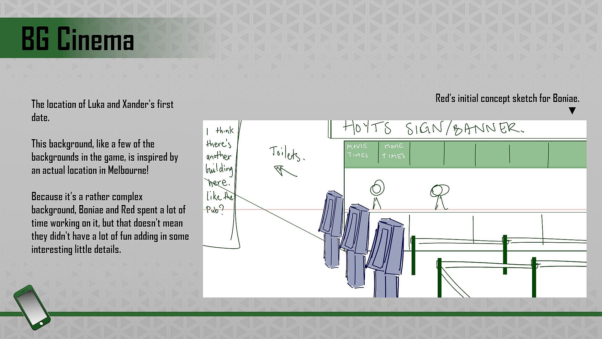 • Sketches and other behind-the-scenes drawings,