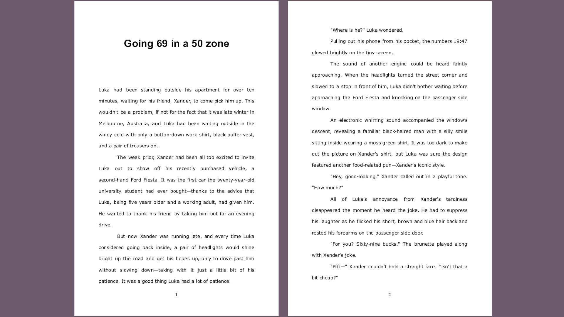 Xander wants to show off his new car to his friend, Luka. The plan was to take Luka out for a night time drive, but the moment Luka hops into the car the two go for a different sort of ride.