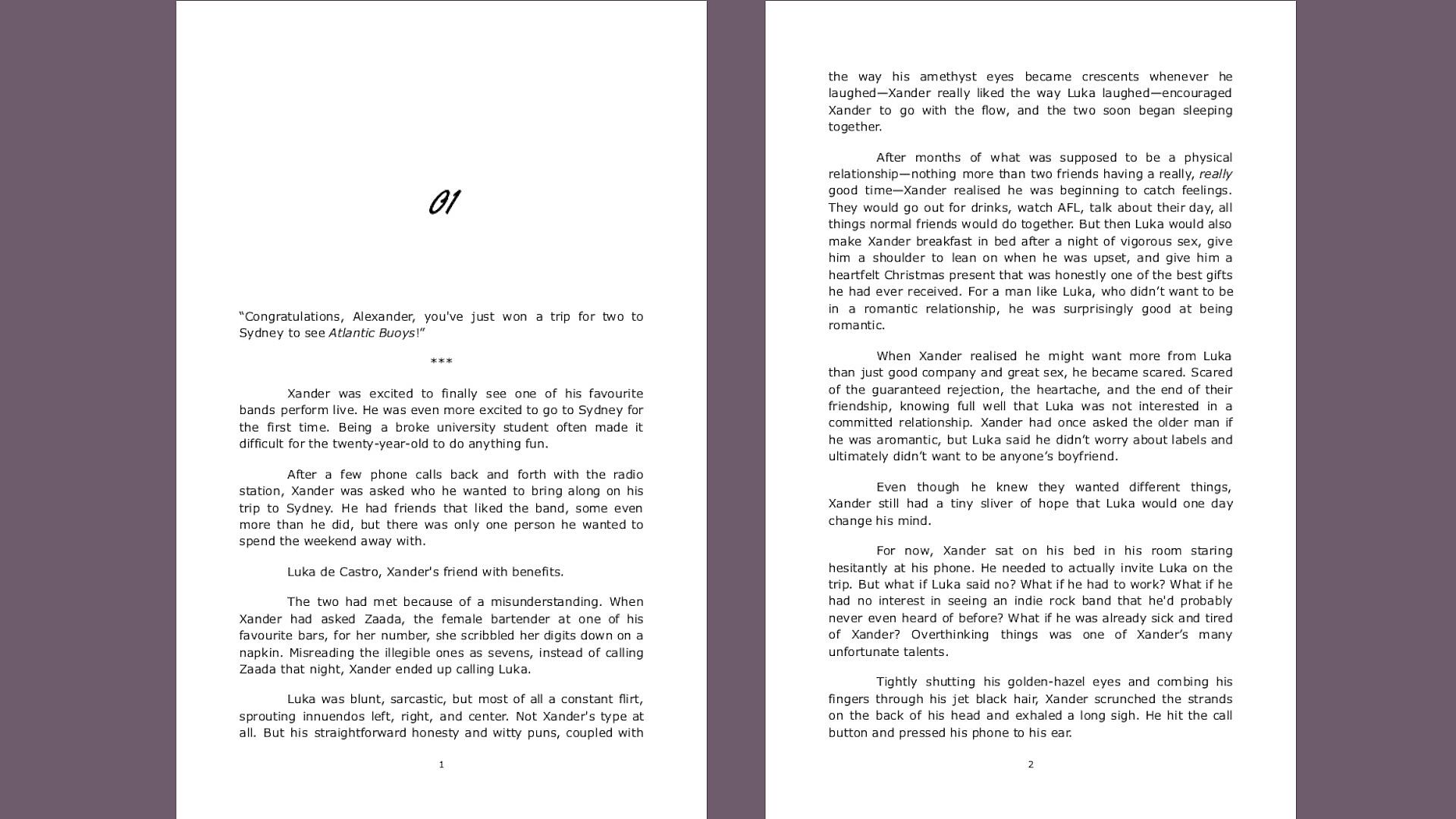 After winning tickets to an indie rock show in Sydney, Xander invites Luka to a weekend getaway in an attempt to either deepen their relationship, or finally end it. Can Xander convince someone whoās against dating to become exclusive? Or will he have his heart broken while on holiday?