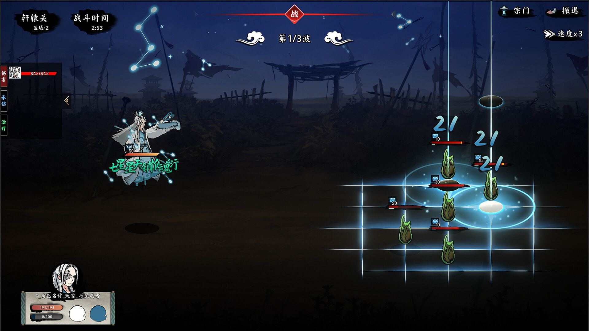 Apply 10 layers of [Starry Sky Derivation] to yourself, which lasts until the end of the wave.