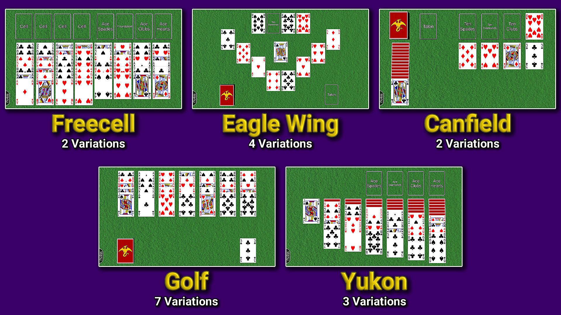 Add multiple versions of Freecell, Canfield, Eagle Wing, Golf, and Yukon!