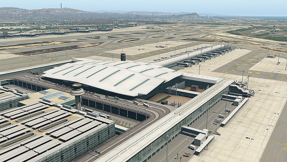 The high-resolution aerial image covers a total surface of 4200 kmΒ² around the airport as well as the city of Barcelona β the whole area also received autogen buildings and vegetation. The airport itself not only sports detailed buildings, pre-rendered night lighting and several animations, but also features ground markings based on up-to-date charts and an AFCAD file containing real parking codes and approach procedures following AIRAC 1708.