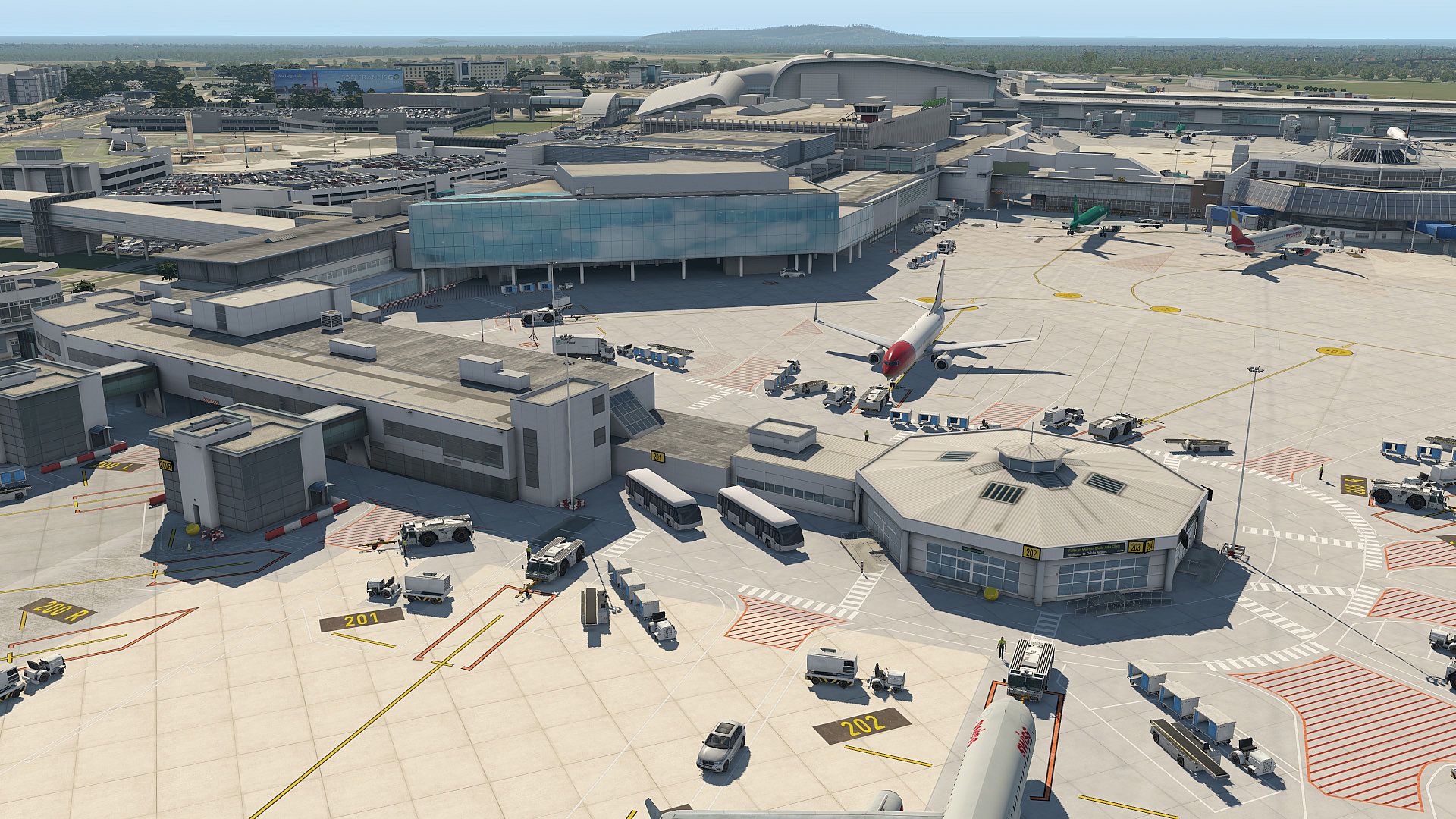 The scenery of the airport which is located 10km north of the city center is in the final development stage representing the original airport of 2014 before the renovation measures. It includes the Terminal 2, also known as Pier E. The product comes with extremely high-resolution textures and with thousands of small details. Despite a very large number of these details in 3D, the frame rate stays absolutely stable and excellent.